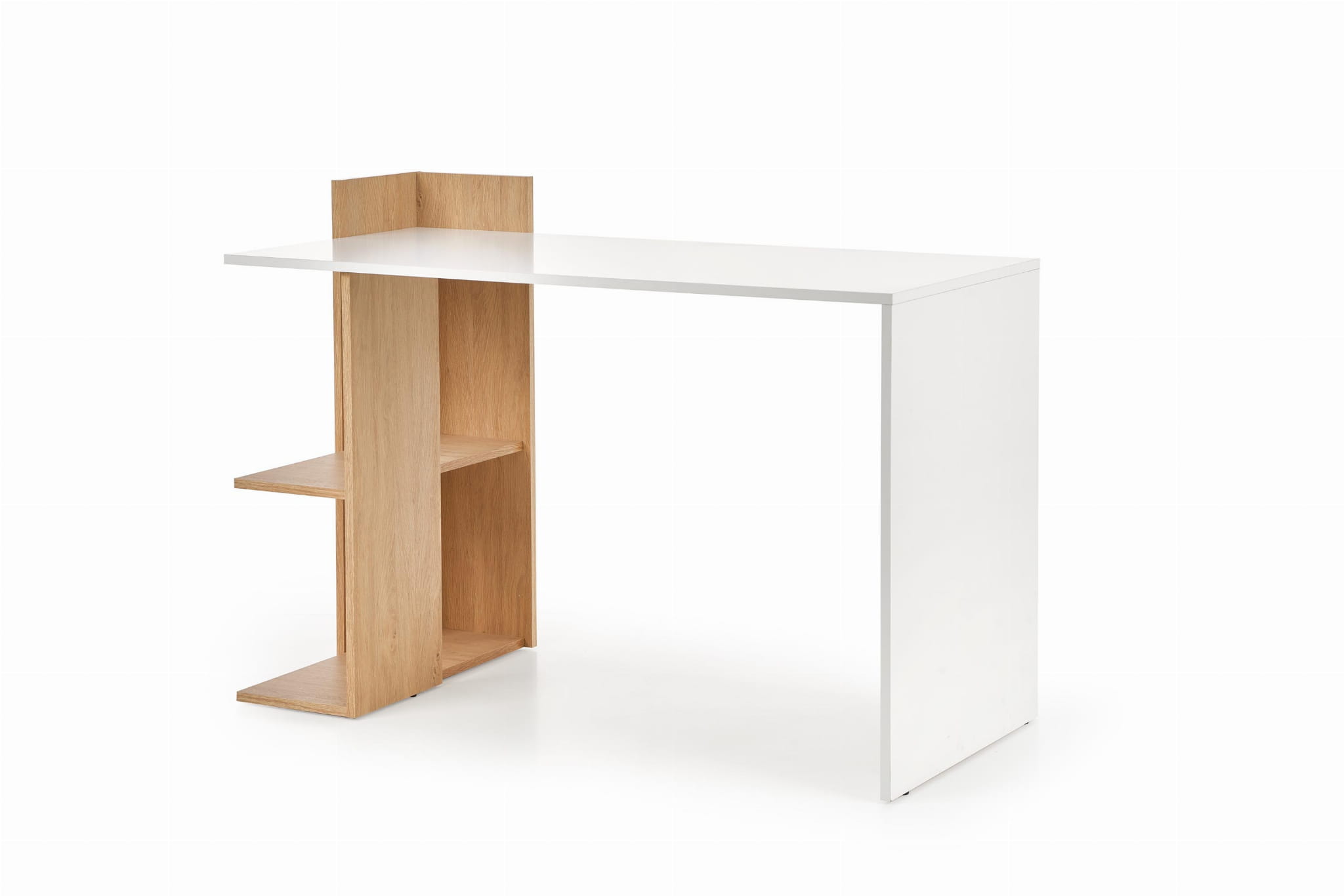 Biurko dąb złoty FINO 122cm to znakomity mebel, który uzupełni klasyczne wnętrze. Doskonale sprawdzi się zarówno jako element domowego biura jak i praktyczny mebel w pokoju dla dziecka z powodu wysokiego komfortu użytkowania. Biurko z półkami FINO jest wykonane z wyjątkowo trwałych materiałów odpornych na zniszczenia, a swoją oryginalną formą przyciąga wzrok. Ponadczasowy design połączony ze smakiem z dawką najnowszych trendów stanowi pierwszorzędny wybór do Twojego pokoju.