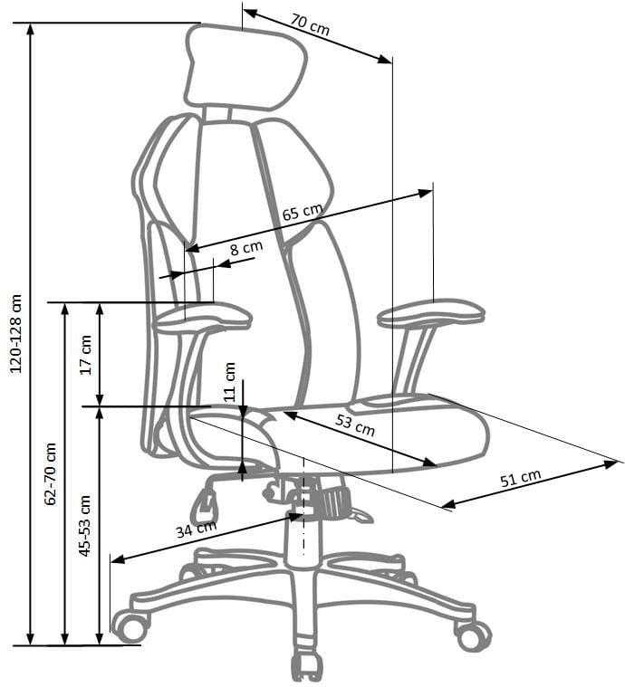 - Wysokość całkowita: 120-128cm