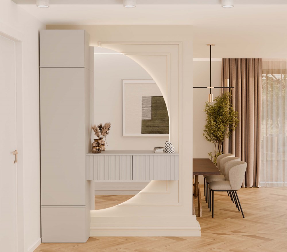 Delikatny odcień kaszmiru w matowym wykończeniu nadaje garderobie elegancji i uniwersalności. To mebel do przedpokoju, który harmonijnie współgra z wnętrzami w stylu skandynawskim, japandi lub modern classic. Garderoba AGA I doskonale wpisuje się w aktualne trendy aranżacyjne.