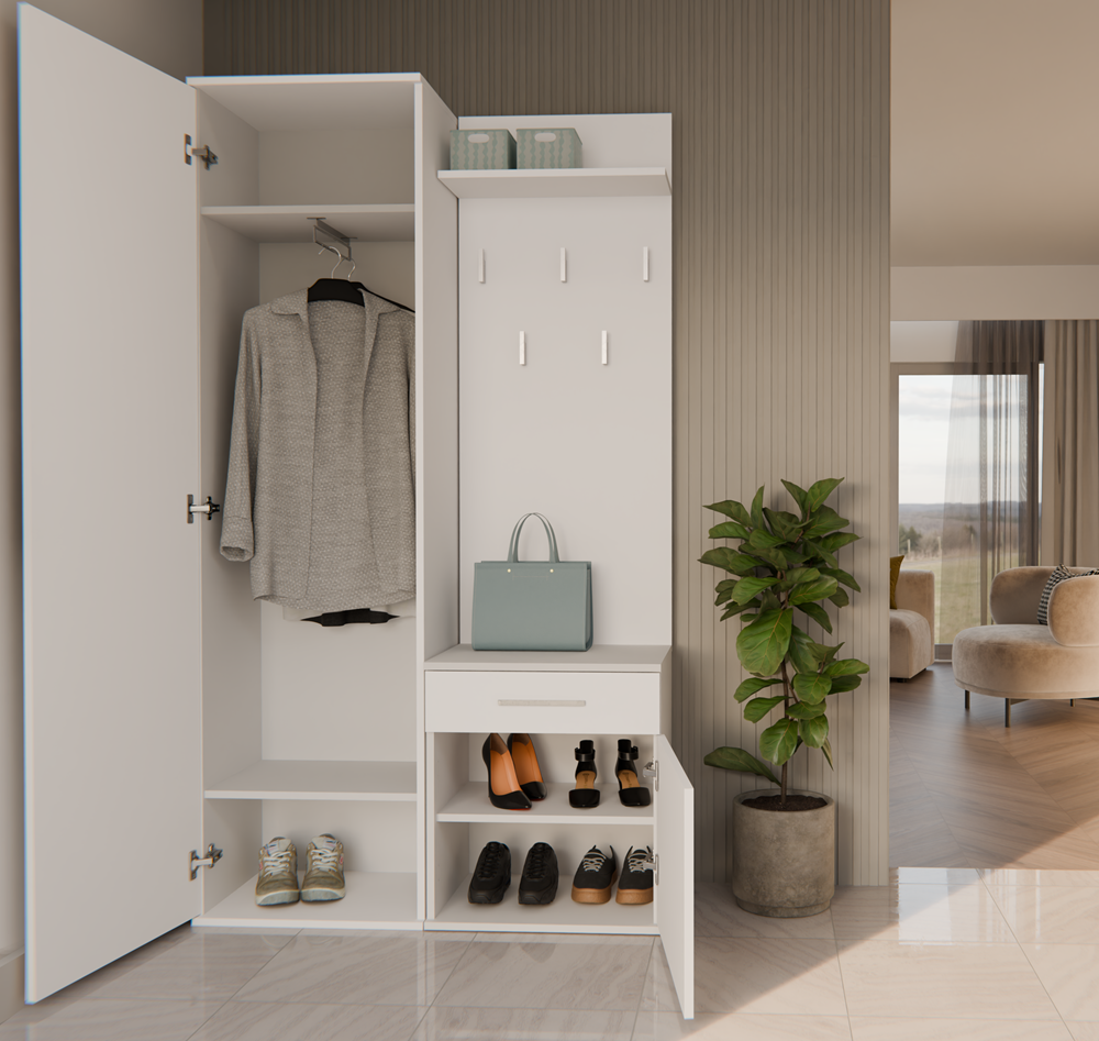 Garderoba do przedpokoju z szafą biała DOMINO 100cm - idealna do stworzenia funkcjonalnej przestrzeni