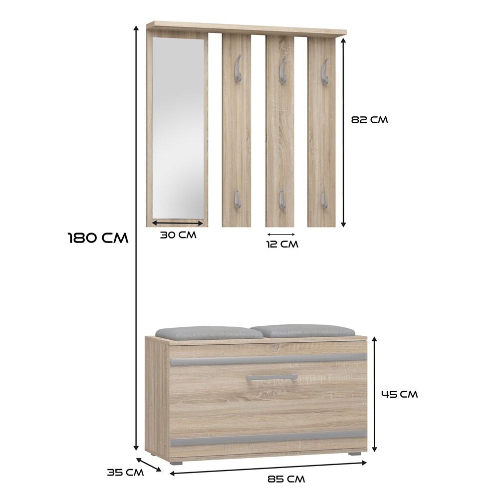 Garderoba do przedpokoju dąb artisan KAMA 85cm - praktyczny mebel do przedpokoju, który pozwoli na stworzenie funkcjonalnego i modnego pomieszczenia. Wieszaki do przedpokoju z siedziskiem dąb artisan KAMA to niebanalny element harmonijnie dopełniający nowoczesny i klasyczny design mieszkania. Wykonany z najwyższej jakości materiałów charakteryzuje się dużą odpornością na uszkodzenia mechaniczne. Konkurencyjna cena oraz solidna konstrukcja sprawia, że jest doskonałym wyborem do Twojego przedpokoju.