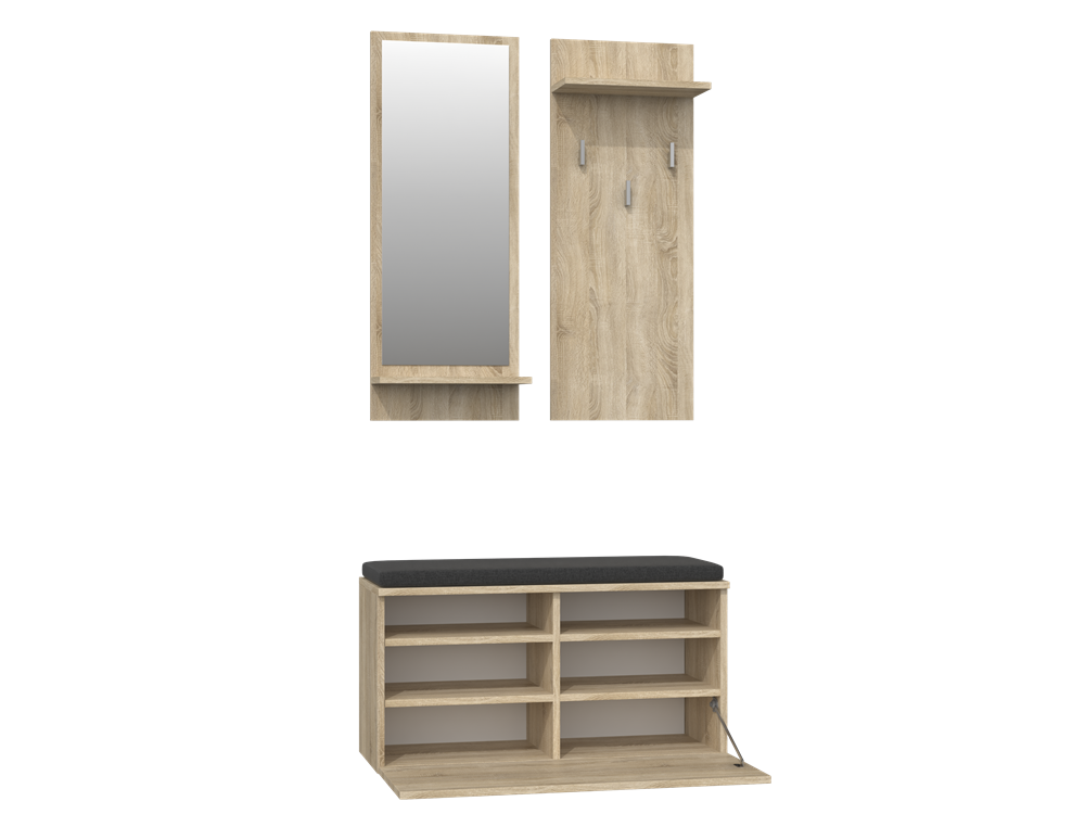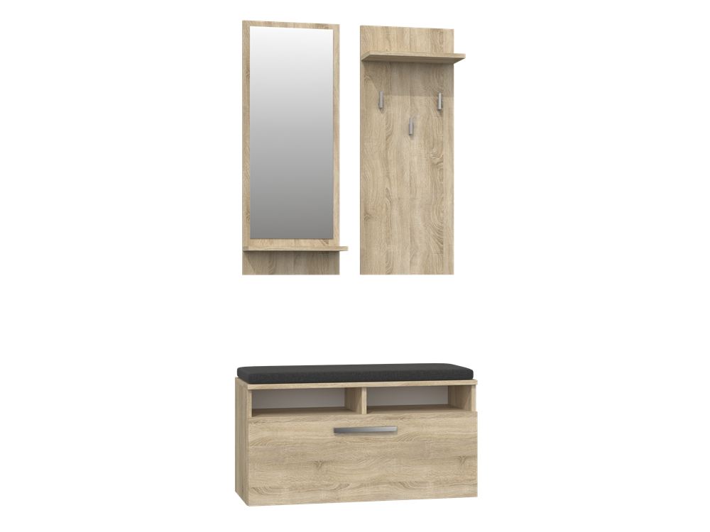 Garderoba do przedpokoju z siedziskiem dąb sonoma RIVIVA to połączenie uniwersalnych walorów z ponadczasowym wzornictwem. Mebel wykonany z dbałością o każdy detal zachwyci zarówno oryginalnym wyglądem, jak i użytecznością. Garderoba do przedpokoju z lustrem dąb sonoma RIVIVA mamy możliwość uzyskania sporej przestrzeni do przechowywania, która pozwoli utrzymać ład i porządek w pomieszczeniu.