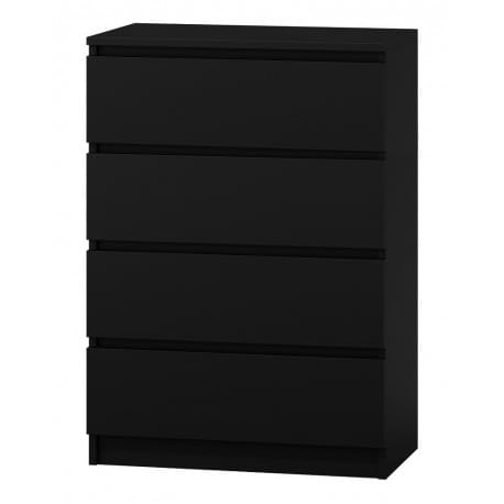 Komoda Czarna APLI 4 70 cm to mebel, który łączy uporządkowaną formę z wyraźnym, eleganckim wyglądem. Ciemna kolorystyka nadaje wnętrzu charakter i podkreśla nowoczesny styl aranżacji. To wysoka komoda, która zapewnia wygodne przechowywanie i dobrze sprawdza się jako komoda czarna w codziennym użytkowaniu.