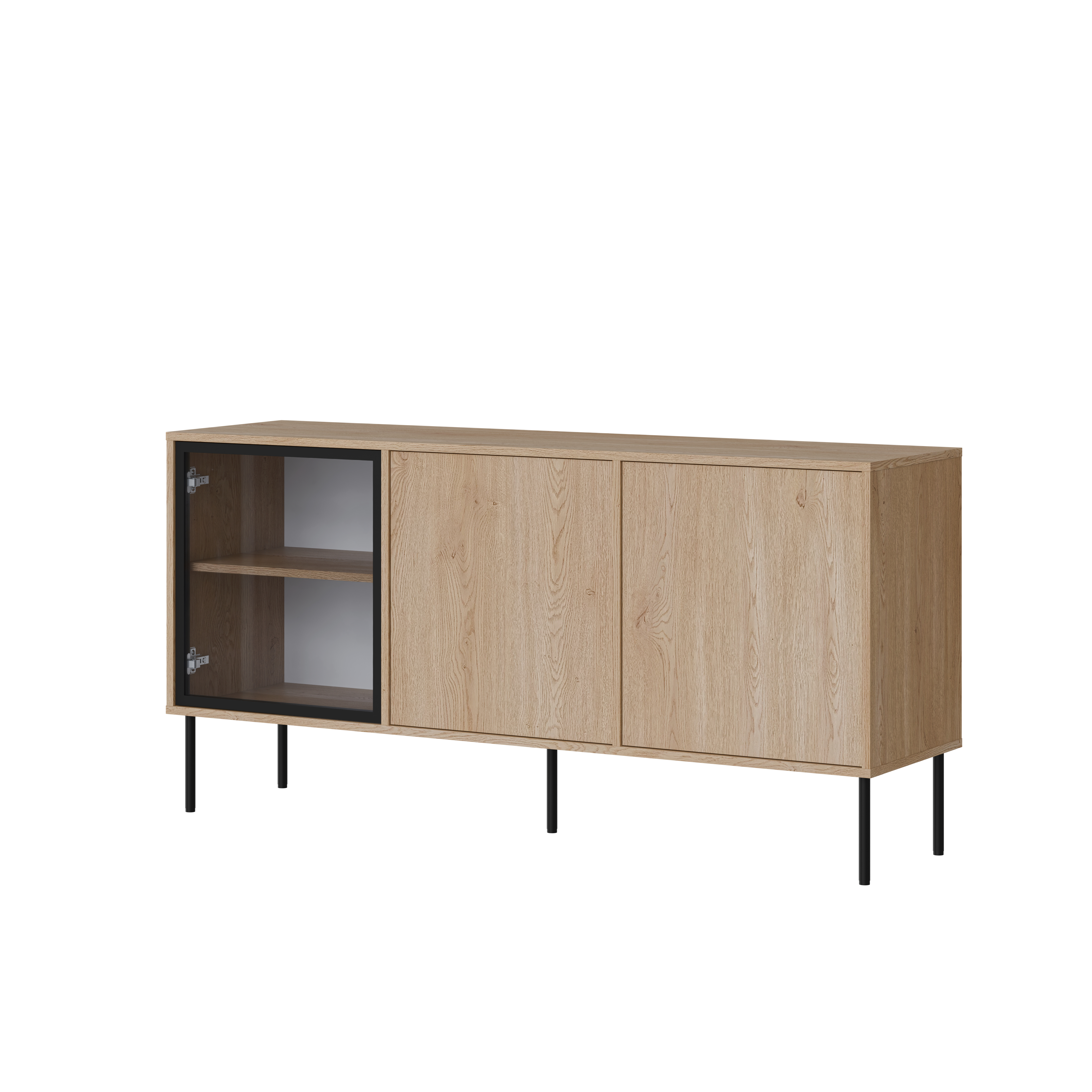 Prosta forma, aluminiowe ramki frontów oraz system bezuchwytowy tworzą nowoczesną całość, która nie przytłacza aranżacji. Dzięki wyważonym proporcjom i uniwersalnemu charakterowi mebel świetnie odnajduje się jako komoda loft w salonie lub jadalni.