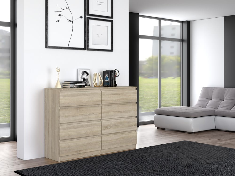 Komoda APLI 8 to pojemny mebel do codziennego użytku – wybierz naturalny styl i wygodę.