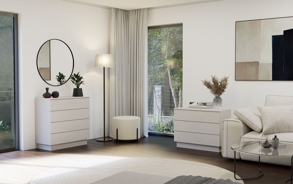 Minimalistyczna forma sprawia, że komoda dobrze wpisuje się w styl nowoczesny, japandi oraz skandynawski. Matowe fronty podkreślają elegancję i nadają całości lekkości wizualnej. Kolor kaszmir świetnie komponuje się z drewnem, czernią i jasnymi dodatkami, tworząc spójną przestrzeń. To uniwersalna beżowa komoda, która ociepla wnętrze i nadaje mu przytulnego charakteru.