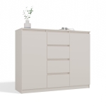 Komoda kaszmir MEGAN 120 cm to pojemna i funkcjonalna komoda z szufladami, która idealnie sprawdzi się w salonie i sypialni. Szeroka konstrukcja zapewnia dużą przestrzeń do przechowywania, a przemyślany układ pozwala wygodnie uporządkować różne rzeczy. Matowe wykończenie i modny kolor kaszmir nadają wnętrzu nowoczesny i elegancki charakter.