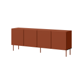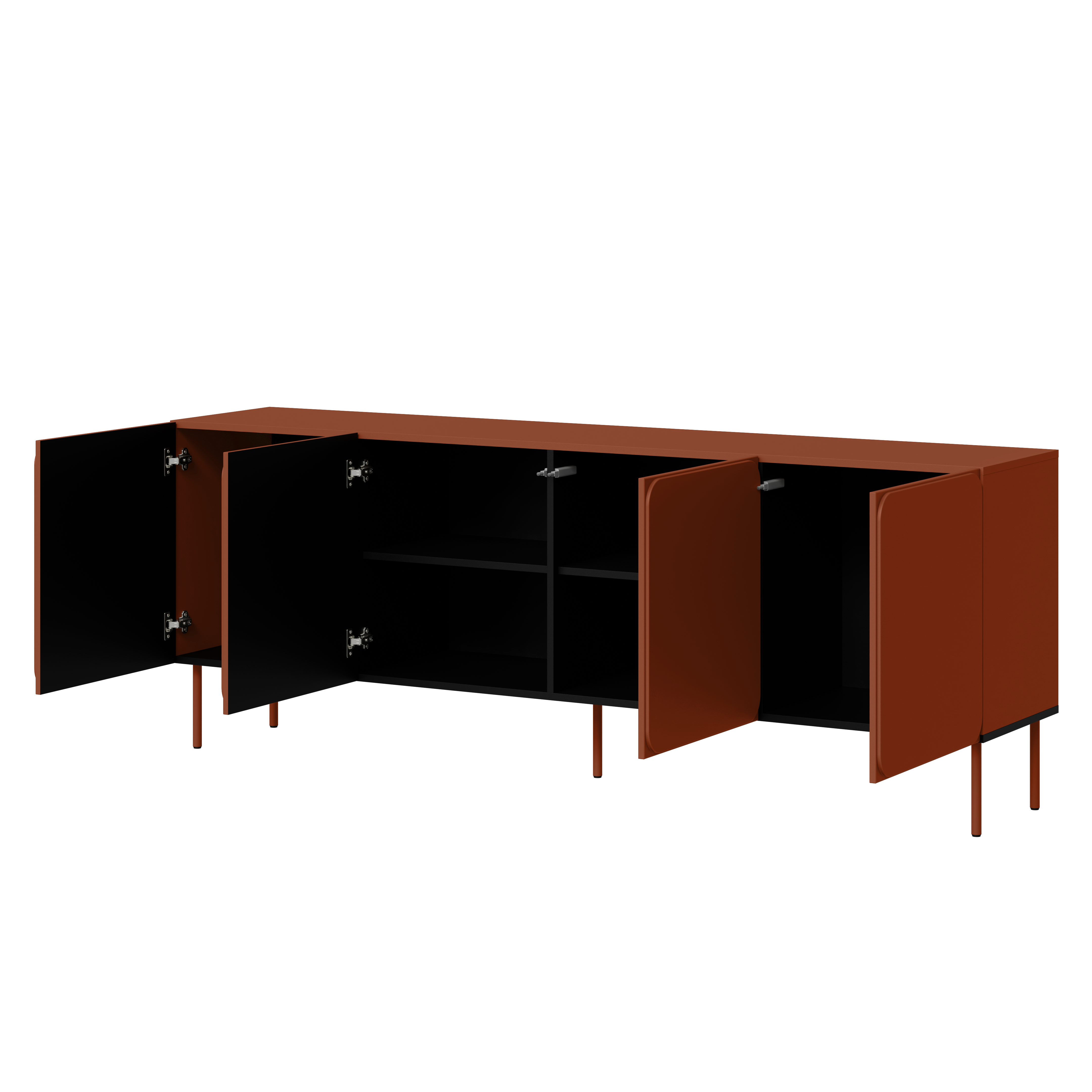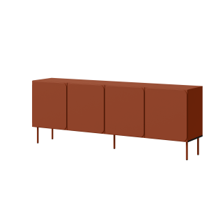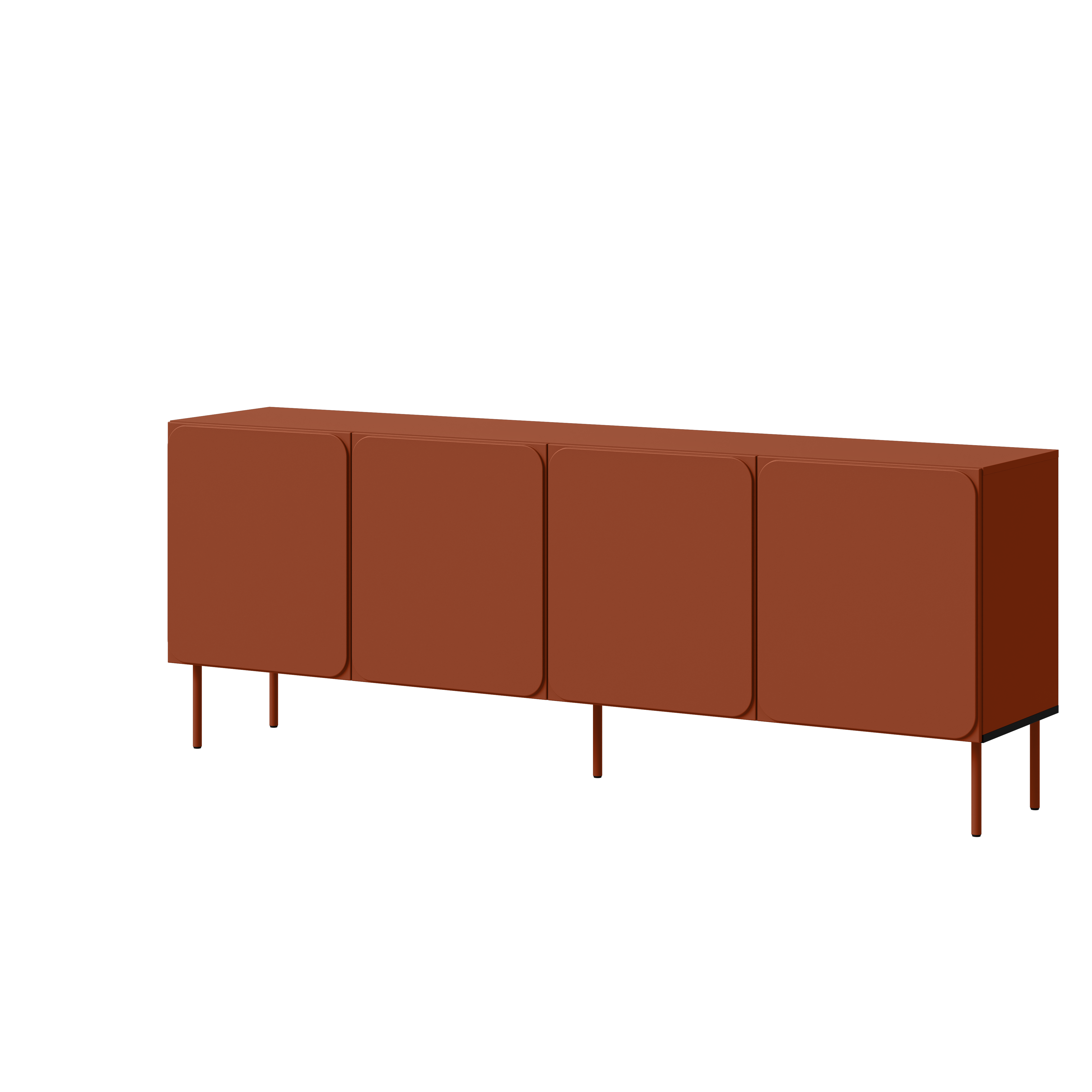 Szeroka bryła o długości 200 cm naturalnie porządkuje przestrzeń dzienną i tworzy stabilną bazę aranżacji. Wysokie, metalowe nóżki unoszą mebel, nadając mu lekkości, a funkcjonalny podział wnętrza sprawia, że komoda 200 cm łączy estetykę z codzienną wygodą użytkowania.