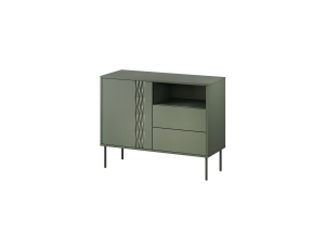 Komoda Zielona TRESSE 1D2S to doskonały wybór, jeśli szukasz mebla, który połączy dekoracyjny detal z praktycznym zastosowaniem — wprowadź do wnętrza spokój i wyrafinowaną estetykę.