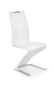 Krzesło białe K188 to elegancki model o nowoczesnej, dynamicznej formie, który przyciąga uwagę swoją lekką i designerską sylwetką. Połączenie białego siedziska z chromowaną podstawą nadaje mu wyjątkowego charakteru. To idealne rozwiązanie dla osób, które poszukują stylowego białego krzesła do jadalni lub salonu.