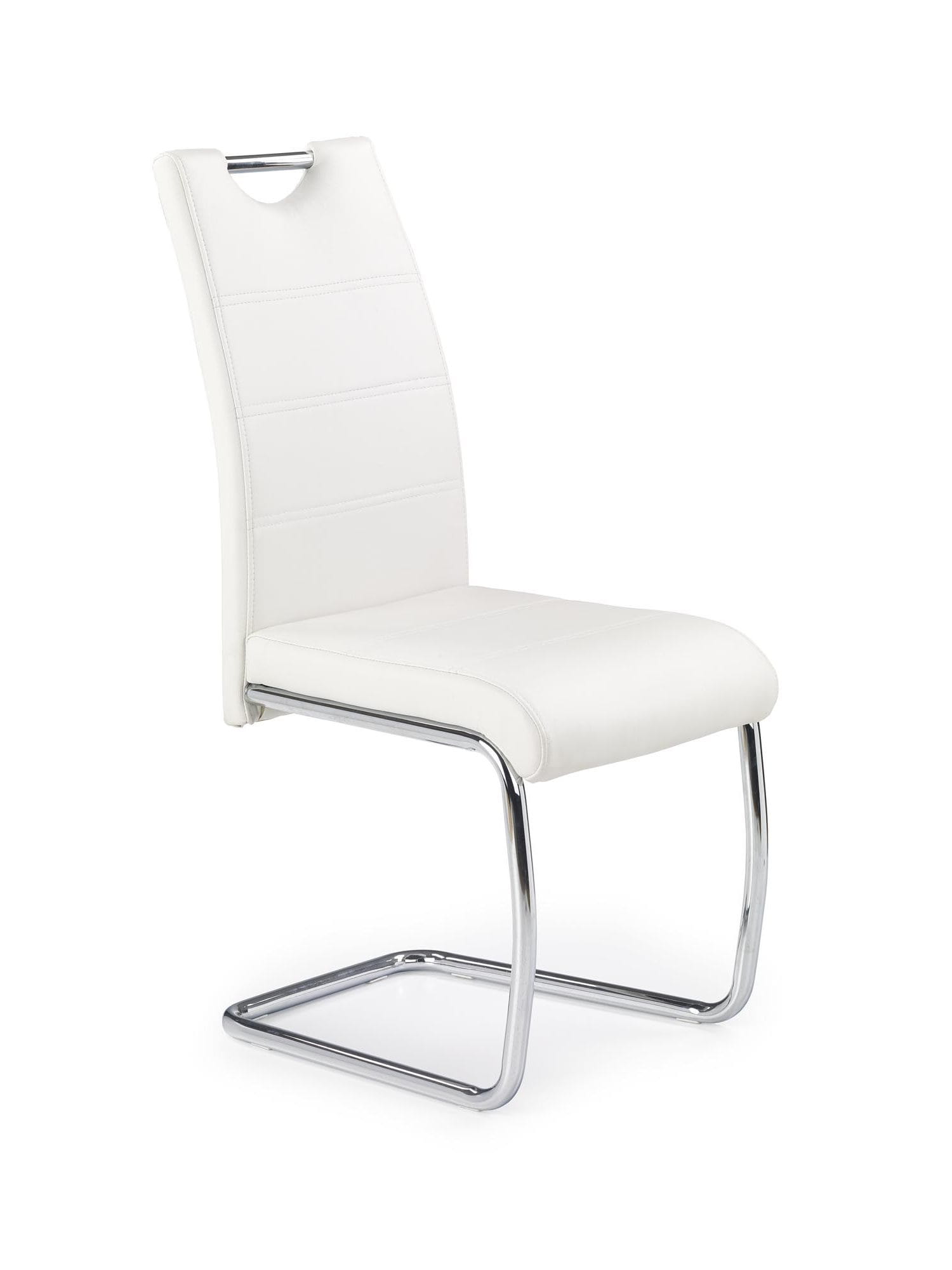 Smukła forma oraz lekko profilowane oparcie nadają meblowi nowoczesny charakter. Białe wykończenie optycznie rozjaśnia wnętrze, a chromowane nogi dodają mu elegancji. Dzięki temu białe krzesła świetnie pasują do wnętrz nowoczesnych, minimalistycznych i glamour, dobrze komponując się z jasnymi dodatkami oraz kontrastowymi elementami.