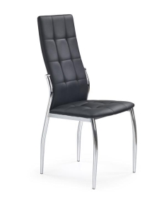 Krzesło czarne K209 to elegancki mebel o smukłej formie, który łączy wygodę z nowoczesnym wyglądem. Krzesło tapicerowane czarne wyróżnia się wysokim oparciem z geometrycznym pikowaniem oraz lekką konstrukcją na chromowanych nogach. Doskonale pasuje do wnętrz nowoczesnych, minimalistycznych i eleganckich.