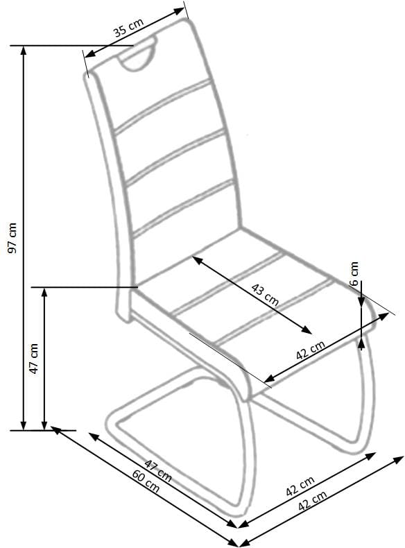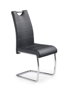 Krzesło czarne K211 to nowoczesny mebel o dynamicznej, lekko wygiętej formie, który łączy wygodę z eleganckim wyglądem. Krzesło tapicerowane czarne wyróżnia się wysokim oparciem z poziomymi przeszyciami oraz stabilną konstrukcją na chromowanej podstawie typu płoza. Doskonale wpisuje się w aranżacje nowoczesne, minimalistyczne i loftowe.
