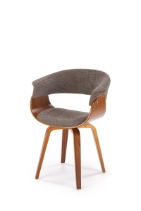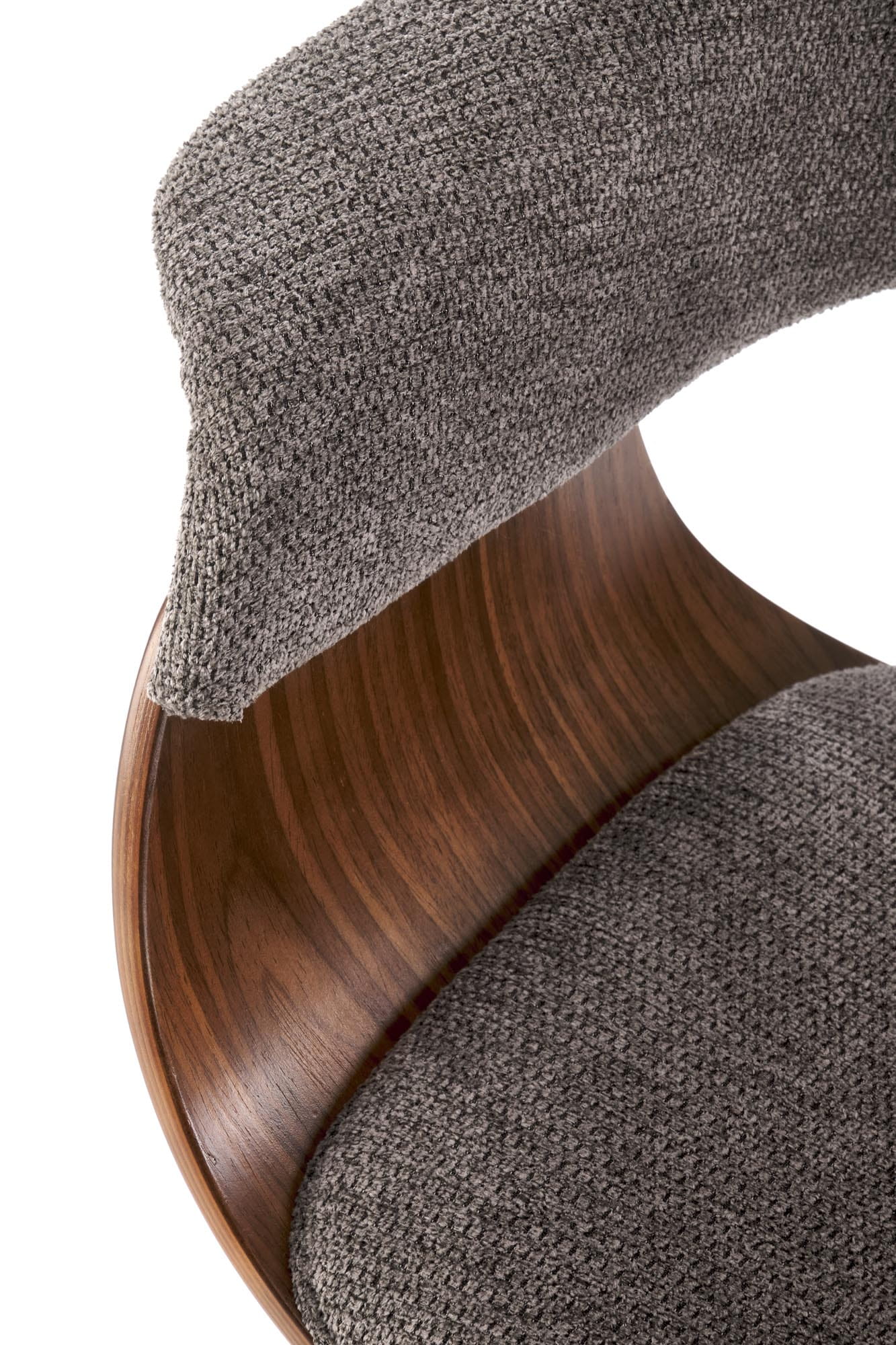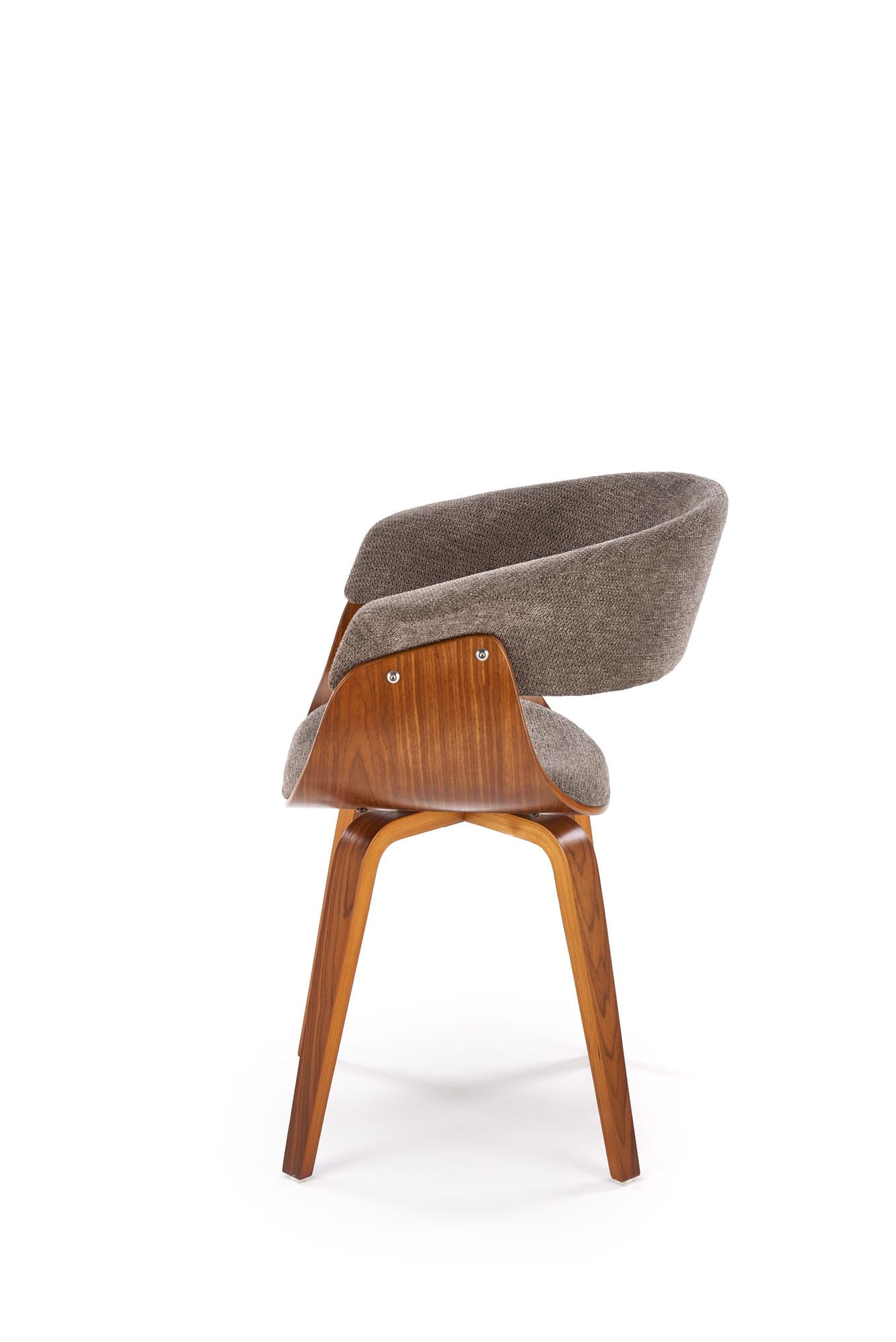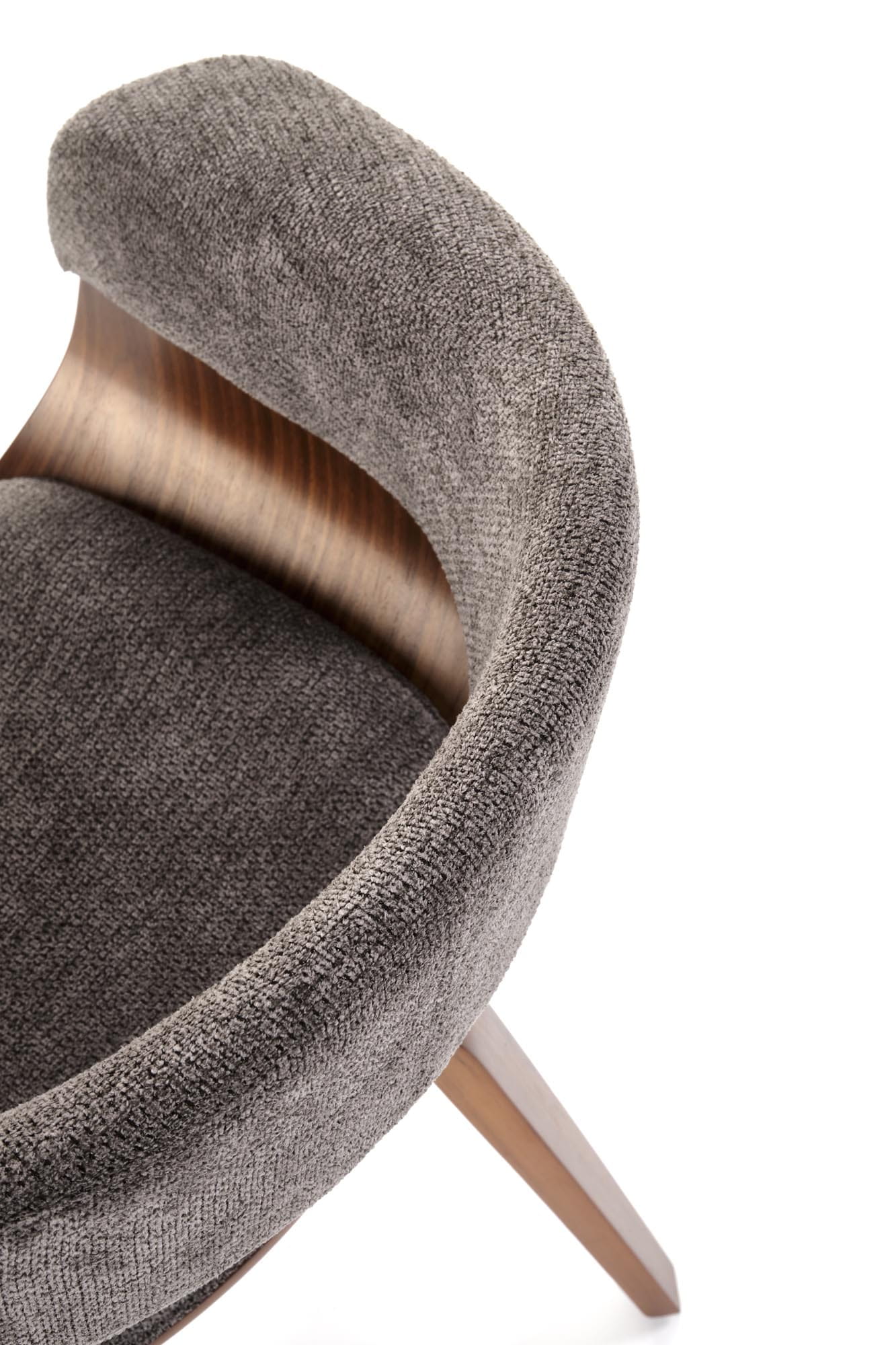 Połączenie giętej sklejki w kolorze orzecha z miękką tapicerką tworzy wyjątkowo harmonijną kompozycję, która przyciąga uwagę swoją formą. Zaokrąglone linie oparcia nadają meblowi lekkości i designerskiego charakteru. Dzięki temu model doskonale sprawdza się jako krzesło nowoczesne, które podkreśla styl współczesnych aranżacji.