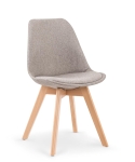 Model K303 to propozycja łącząca komfort użytkowania z prostą, estetyczną formą. Dzięki swojej uniwersalnej konstrukcji krzesłu szaremu łatwo dopasować się do różnych aranżacji wnętrz. Jasna tapicerka oraz drewniane nogi w kolorze buku nadają mu lekkości i naturalnego charakteru.