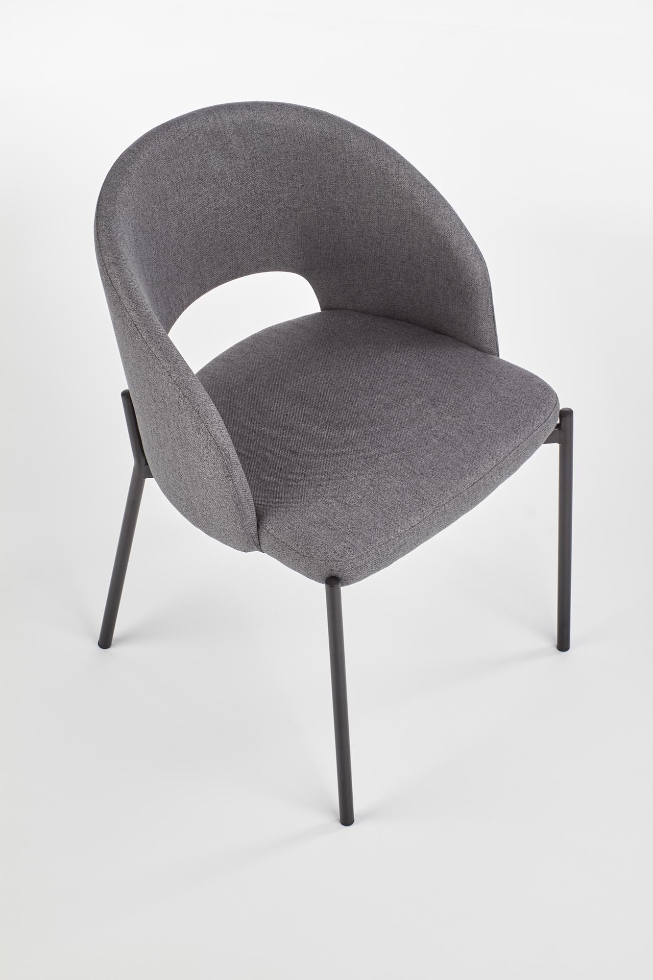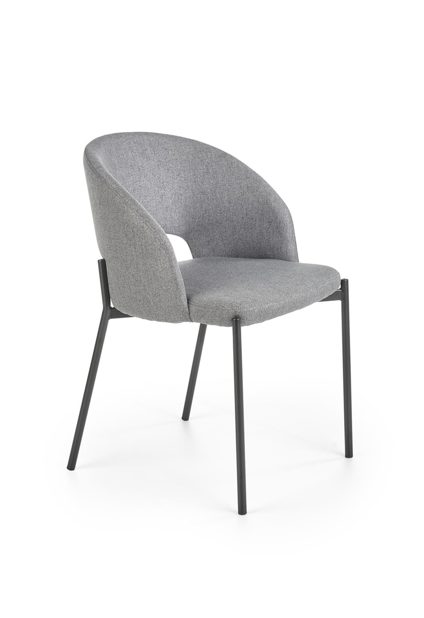 Miękkie siedzisko oraz delikatnie profilowane oparcie sprawiają, że mebel prezentuje się elegancko i nowocześnie. Smukła konstrukcja nadaje całości lekkości wizualnej, dzięki czemu model dobrze wygląda nawet w mniejszych przestrzeniach. Dzięki temu szare krzesło staje się stylowym elementem wyposażenia zarówno jadalni, jak i salonu.