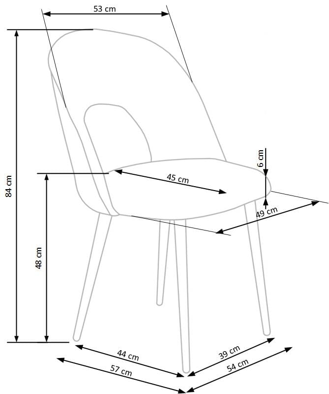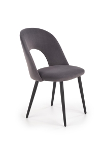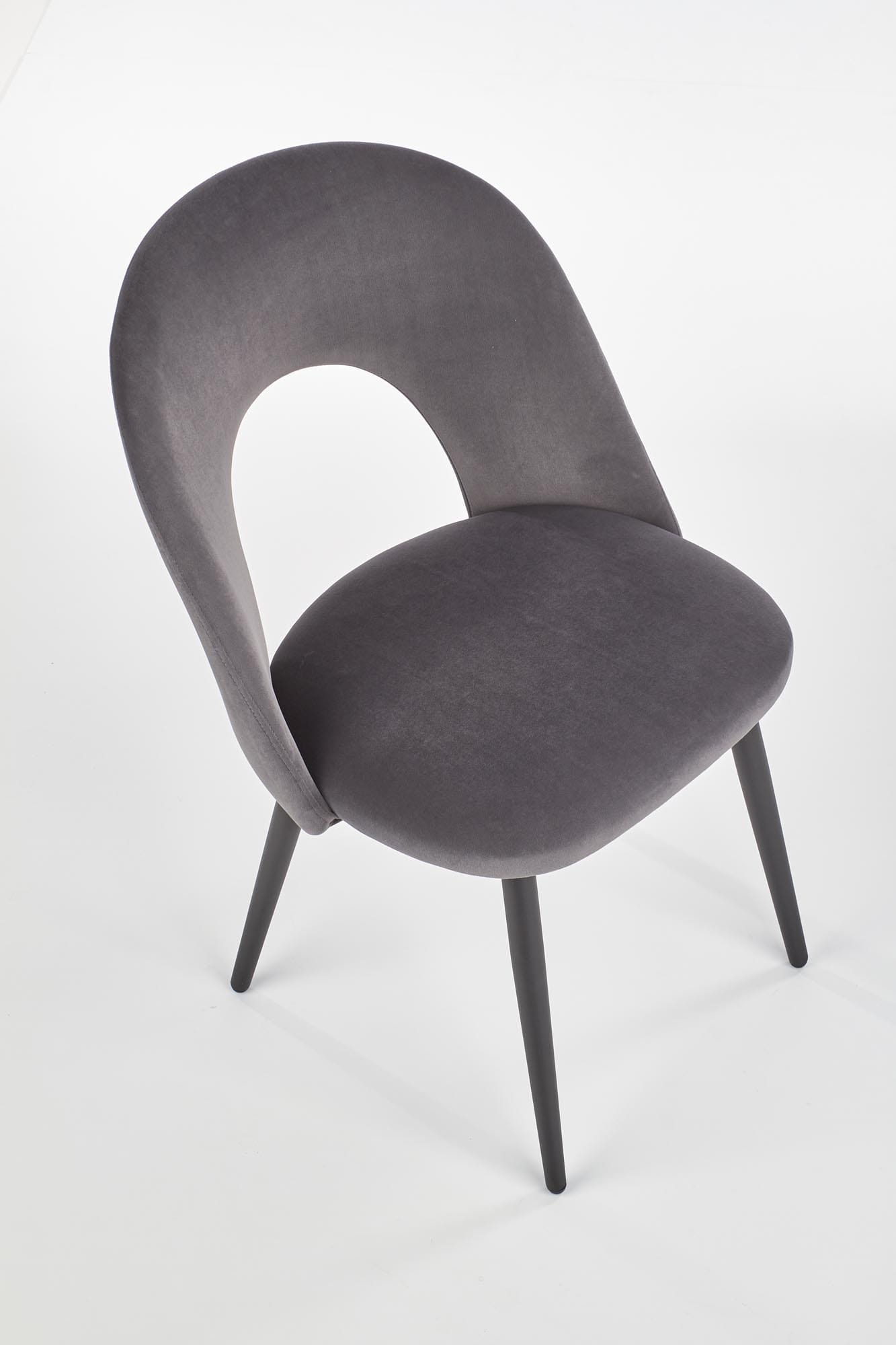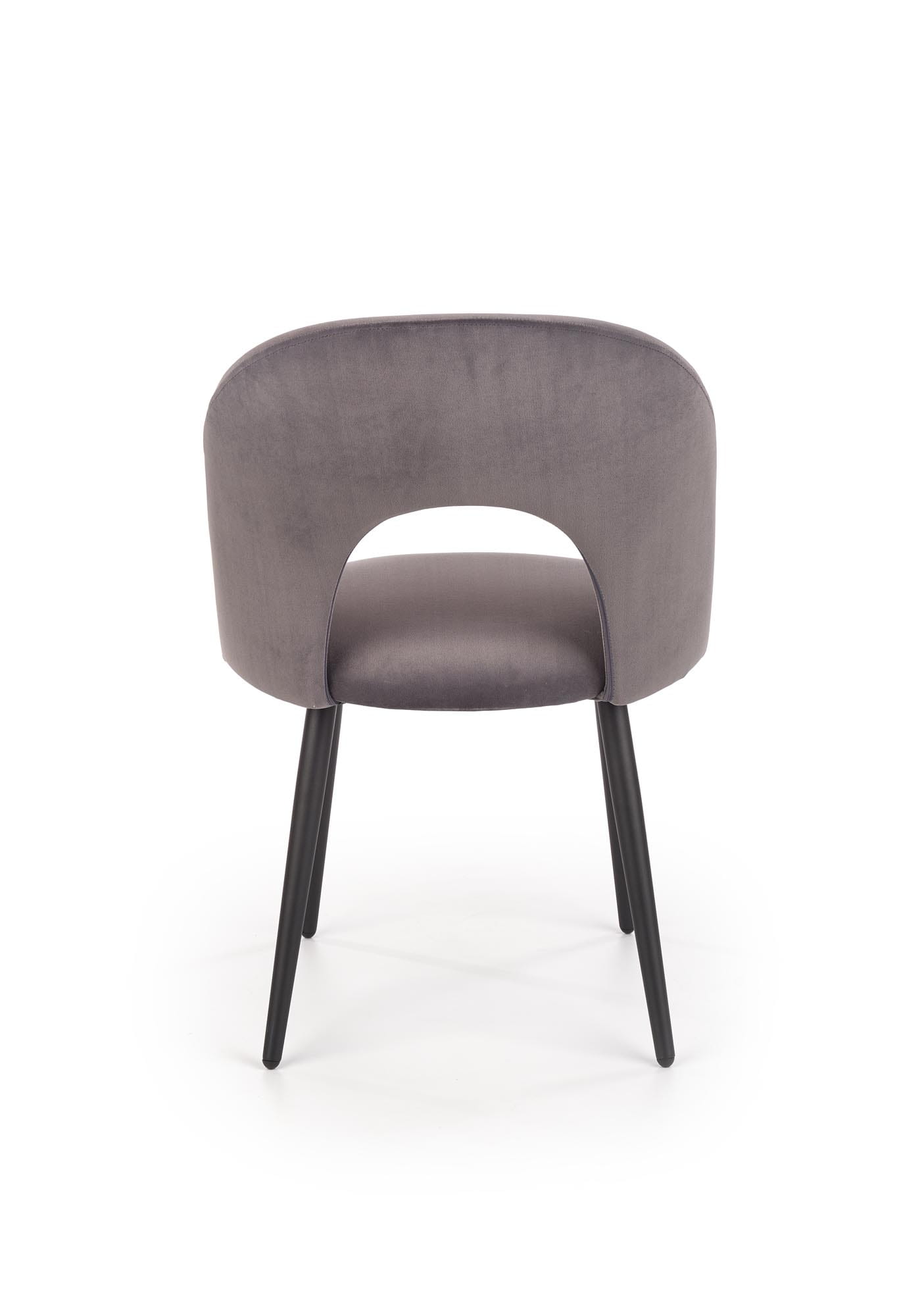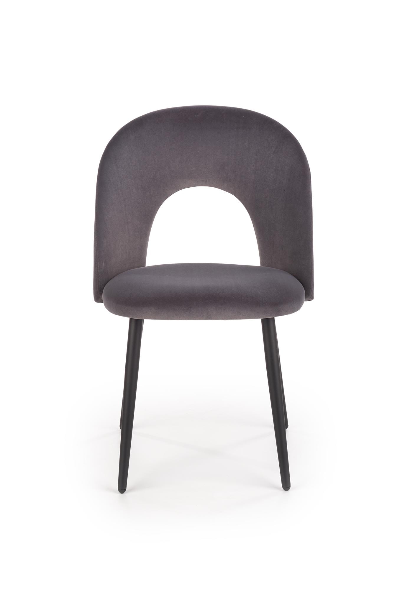 Model K384 wyróżnia się nowoczesnym kształtem oparcia z dekoracyjnym wycięciem, które nadaje bryle lekkości i oryginalnego charakteru. Miękkie siedzisko wykonane z przyjemnej w dotyku tkaniny velvet zapewnia wysoki komfort użytkowania. Dzięki eleganckiemu wykończeniu krzesło welurowe szare doskonale prezentuje się zarówno przy stole w jadalni, jak i w nowoczesnym salonie.