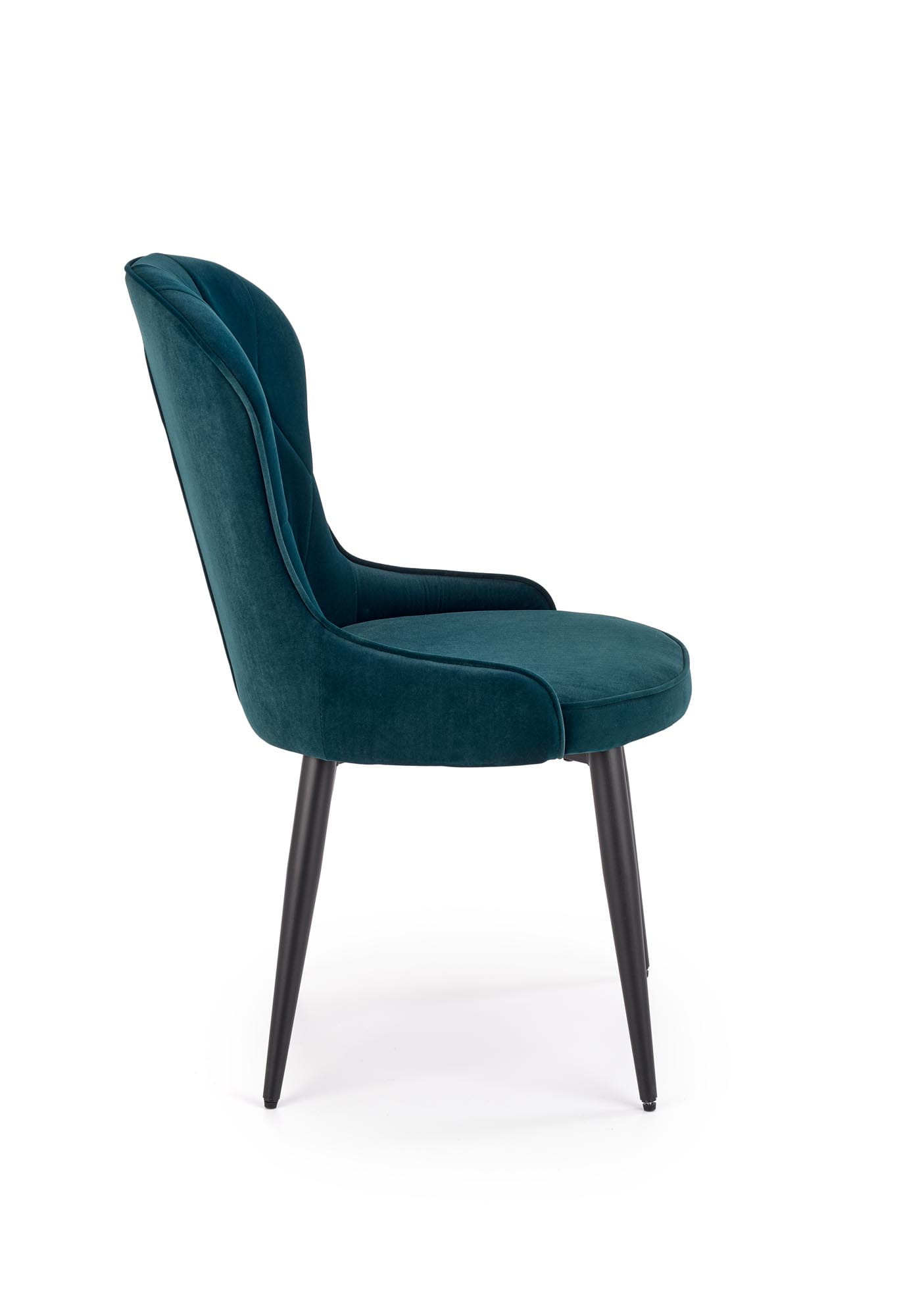 Model K366 wyróżnia się elegancką formą oraz dekoracyjnym pikowaniem oparcia. Aksamitna tapicerka przyjemnie odbija światło i podkreśla stylowy charakter mebla. Dzięki stabilnej konstrukcji oraz smukłej sylwetce to wygodne zielone krzesło doskonale sprawdzi się zarówno w jadalni, jak i w salonie. To połączenie funkcjonalności z modnym designem.