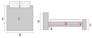 - Głębokość skrzyni na materac E: 4 cm