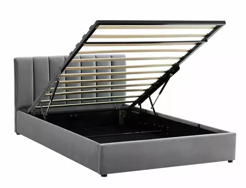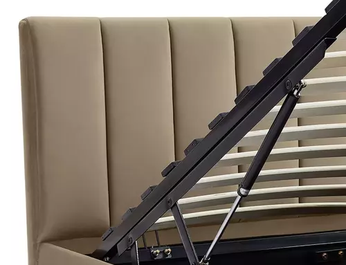 Model MONTREAL wyposażony został w solidny stelaż z listew giętych osadzonych w elastycznych uchwytach, co gwarantuje idealne podparcie dla materaca. Gazowe siłowniki umożliwiają łatwe unoszenie stelaża i wygodny dostęp do dużego pojemnika na pościel z miękką podłogą. To rozwiązanie, które pozwala utrzymać porządek w sypialni i zapewnia maksymalne wykorzystanie przestrzeni. Konstrukcja jest stabilna i zapewnia komfort przez wiele lat użytkowania.