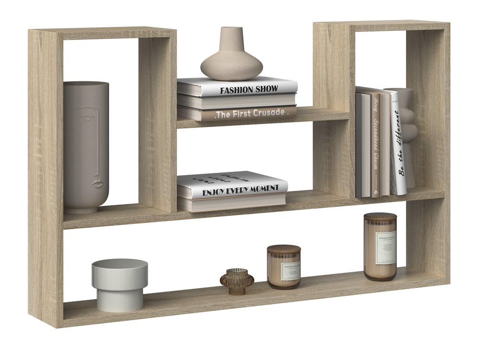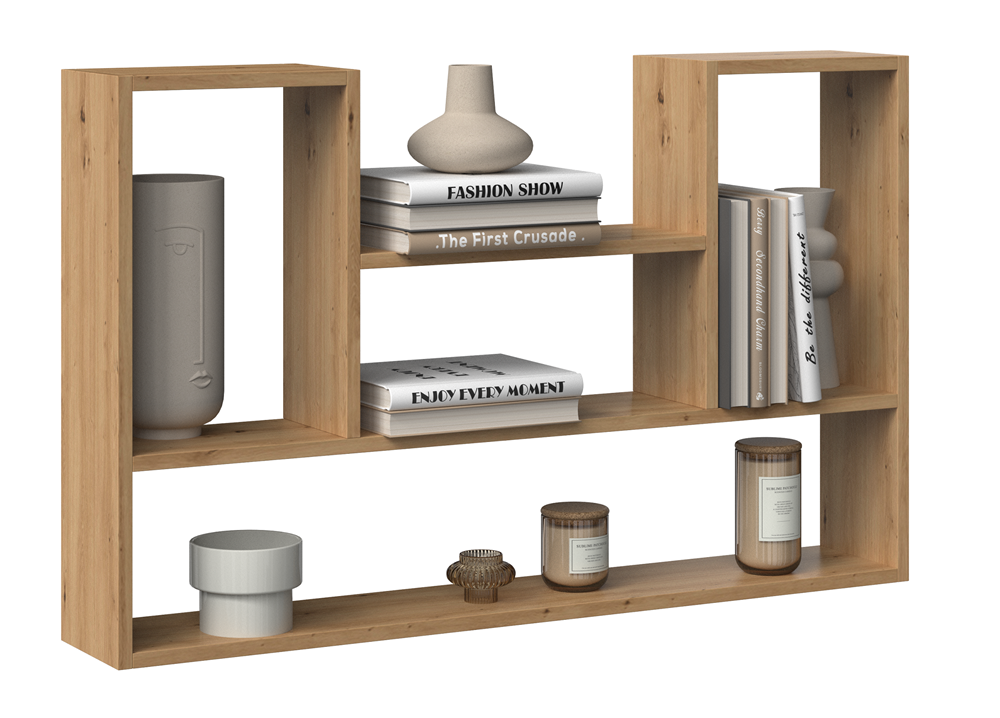 Ta półka ścienna wisząca doskonale sprawdzi się jako miejsce do przechowywania książek, dekoracji i drobnych przedmiotów. Dzięki odpowiedniej szerokości i układowi przegród możesz łatwo zorganizować przestrzeń. Model świetnie komponuje się z innymi elementami wyposażenia, takimi jak komody do salonu. To funkcjonalny wybór do nowoczesnych wnętrz.