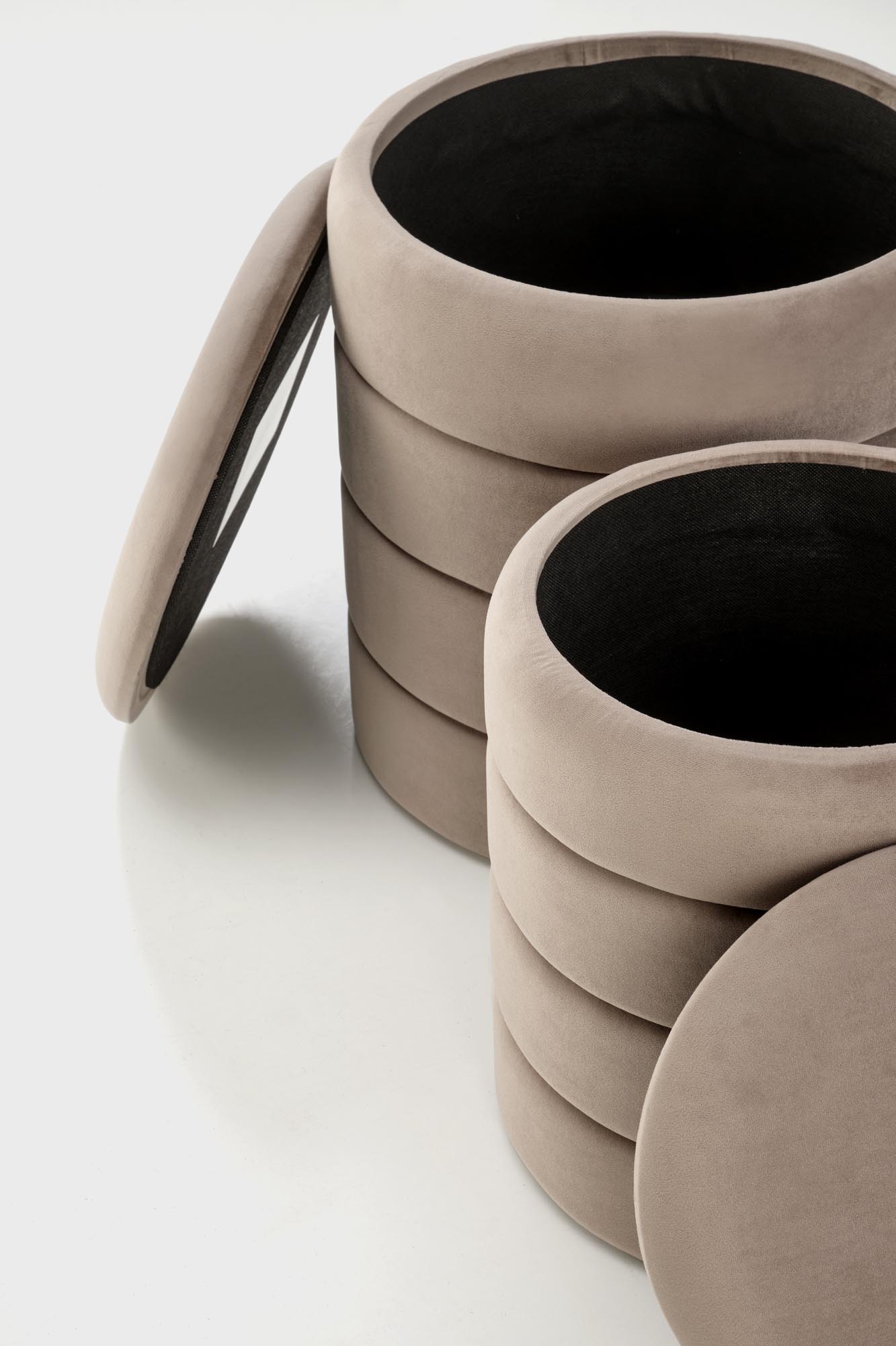 Pufa ze schowkiem PACHO to funkcjonalny zestaw dwóch puf o różnych rozmiarach. Każda z nich posiada pojemny schowek, w którym bez trudu zmieścisz koc, zabawki lub czasopisma. Dzięki temu wnętrze pozostaje zawsze uporządkowane, a przestrzeń zyskuje nowy wymiar praktyczności. To idealne rozwiązanie do salonu, sypialni lub garderoby.