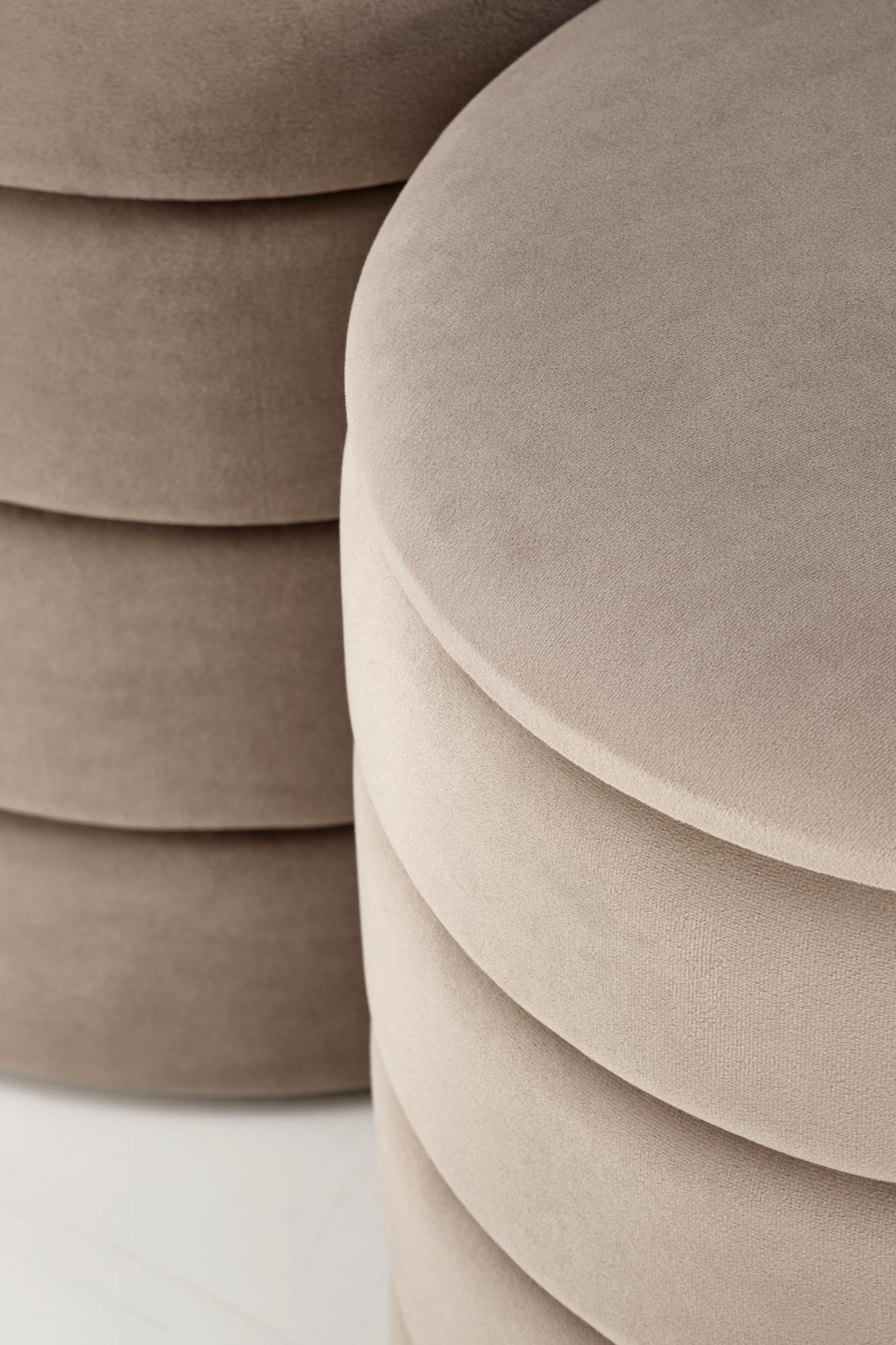 Tkanina velvet nadaje pufom wyjątkowej miękkości i elegancji. Zestaw PACHO łączy komfort użytkowania z wysoką estetyką, dzięki czemu doskonale komponuje się z wnętrzami w stylu modern, klasycznym lub glamour.
