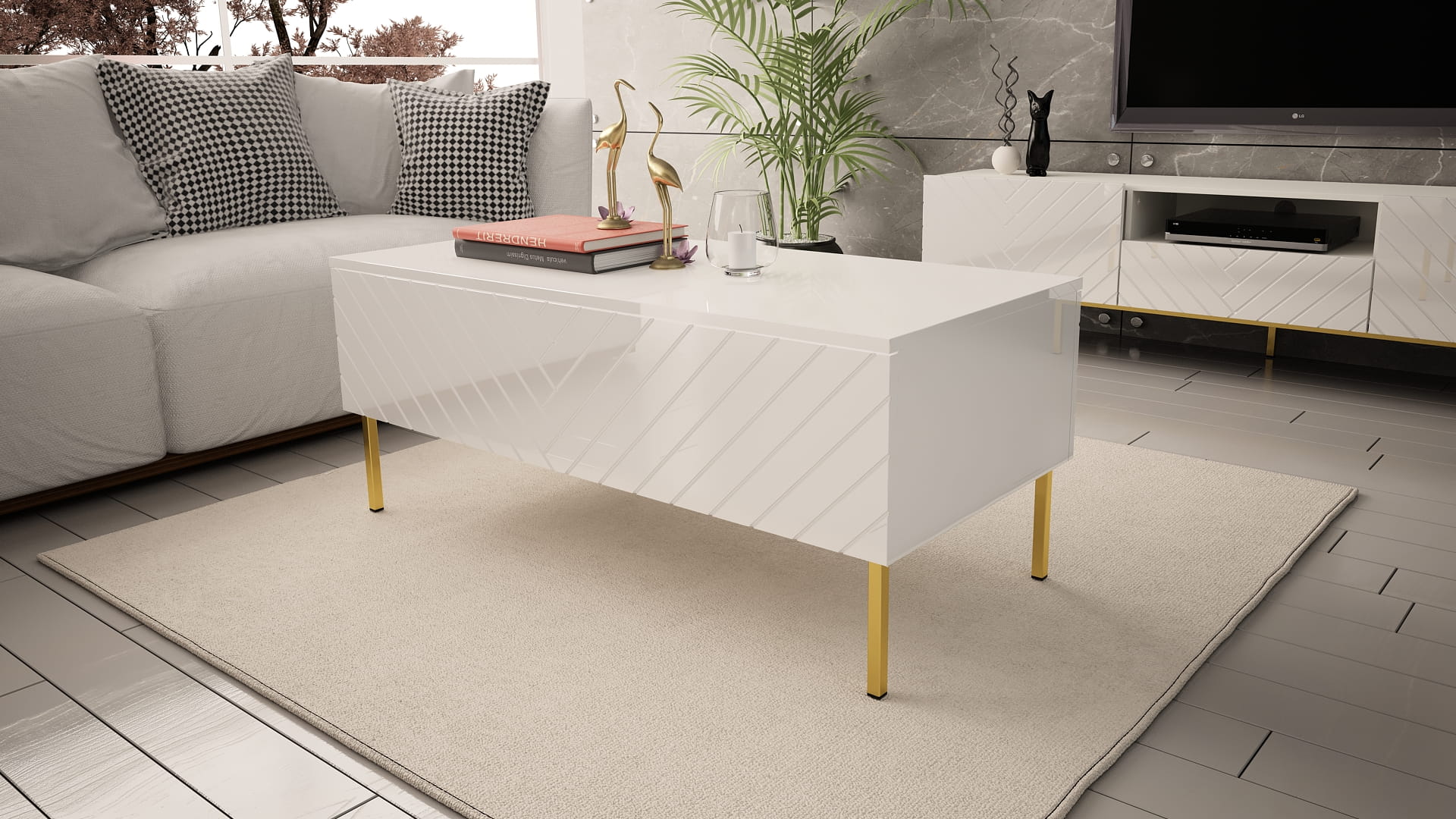 Stolik kawowy Biały Połysk GALA 120x55cm – prosty sposób na odmianę wnętrza!