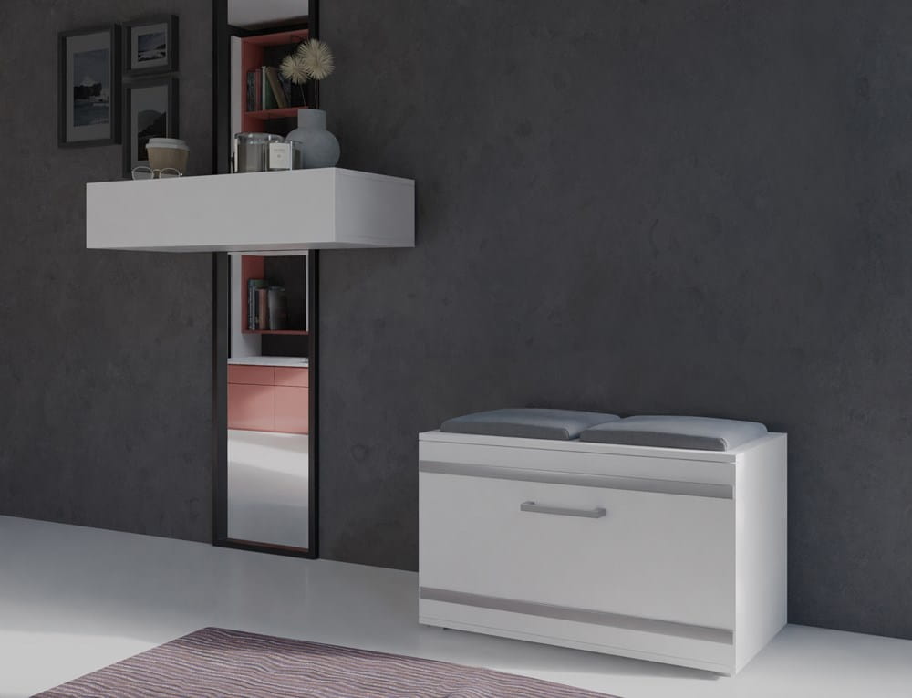 Siedzisko do przedpokoju z szafką na buty białe KAMA 85cm - idealny do stworzenia funkcjonalnej przestrzeni