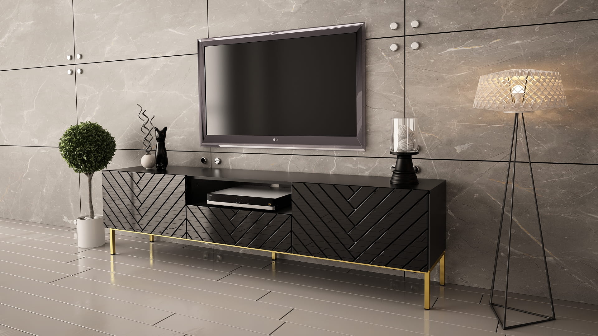 Szafka RTV GALA to połączenie elegancji i nowoczesnego stylu, które odmieni wygląd salonu – postaw na efektowny design i funkcjonalność.