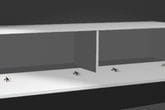 Wewnątrz znajdują się dwie wygodne komory, które umożliwiają przechowywanie sprzętu RTV i akcesoriów. Konstrukcja wisząca ułatwia utrzymanie podłogi w czystości, a nowoczesne wykończenie idealnie komponuje się z przestrzeniami, w których świetnie sprawdza się szafka wisząca pod TV.