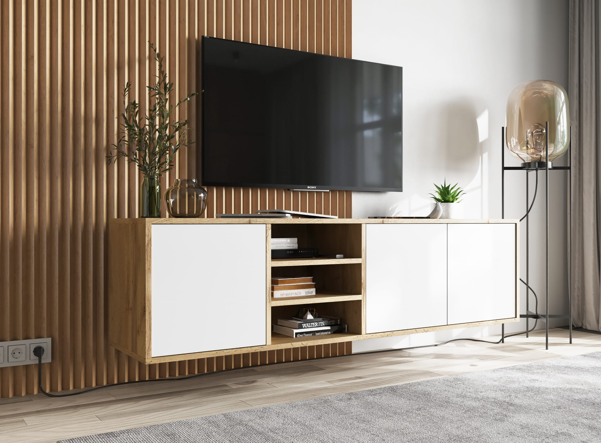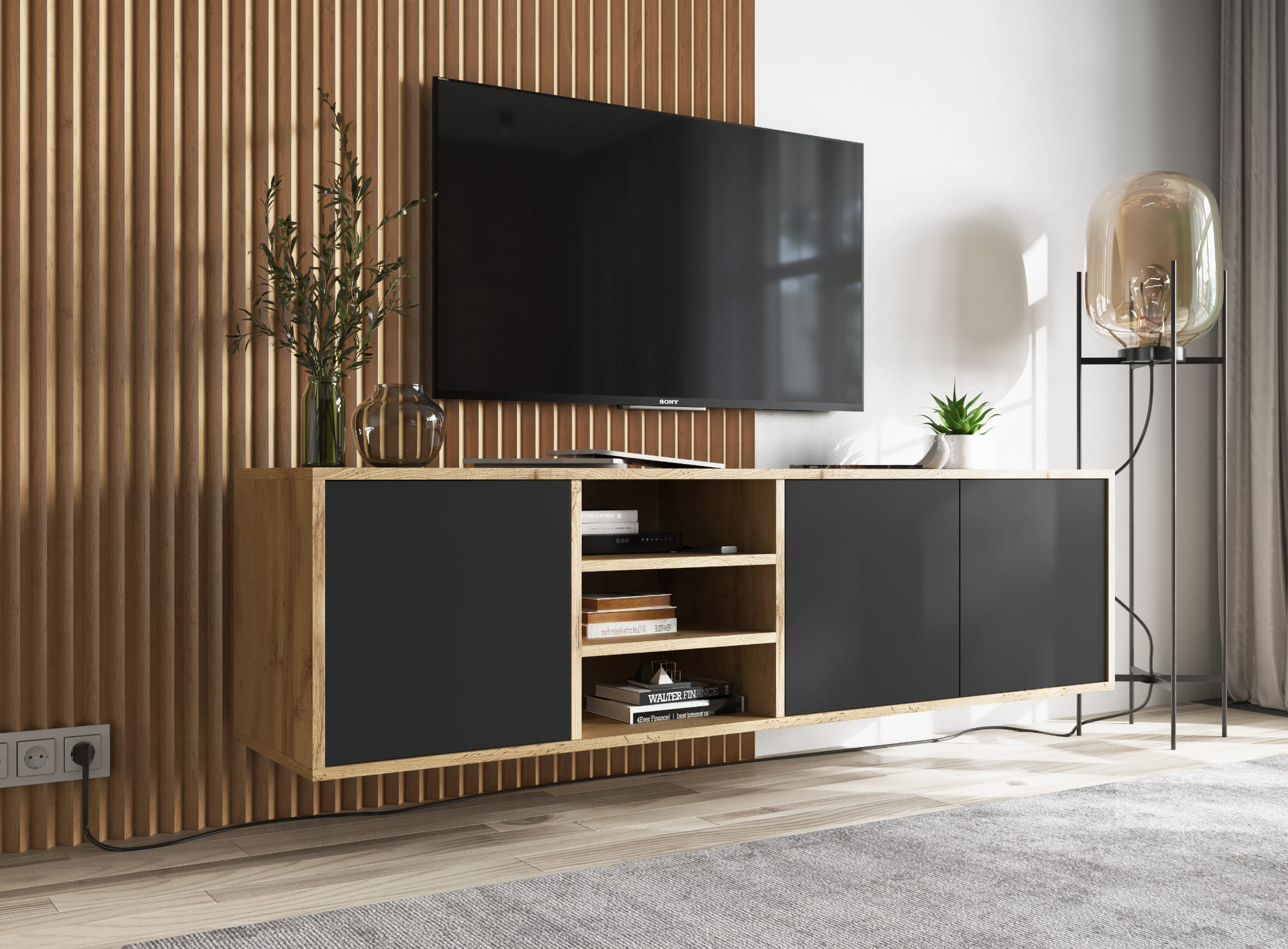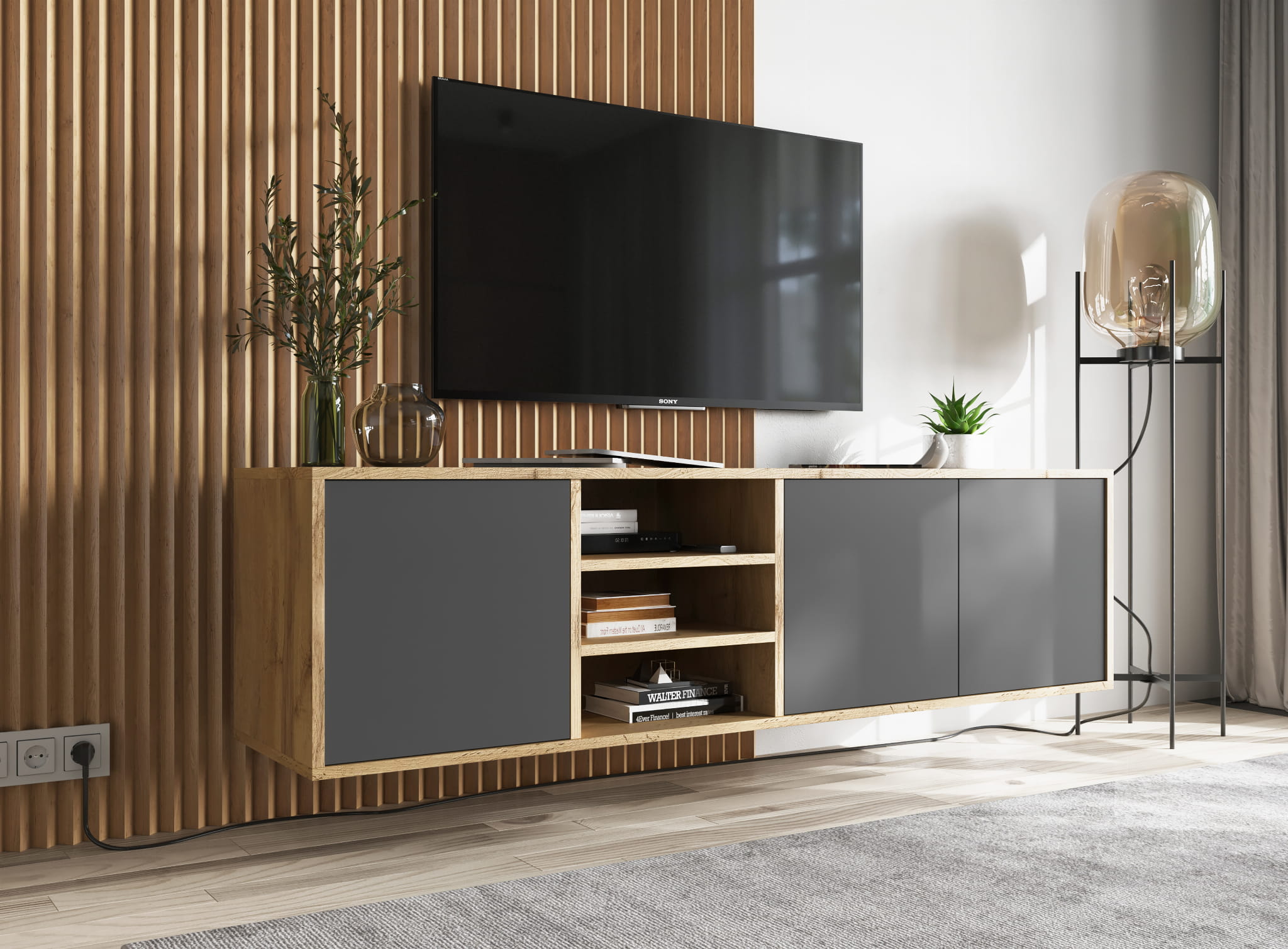 Model POLI to propozycja dla osób, które cenią naturalny wygląd drewna i funkcjonalność w codziennym użytkowaniu. Dekor dąb wotan wprowadza do wnętrza ciepło i przytulność, a jednocześnie dobrze łączy się z nowoczesnymi elementami aranżacji. To szafka RTV dąb wotan, która pasuje zarówno do wnętrz loftowych, jak i skandynawskich.