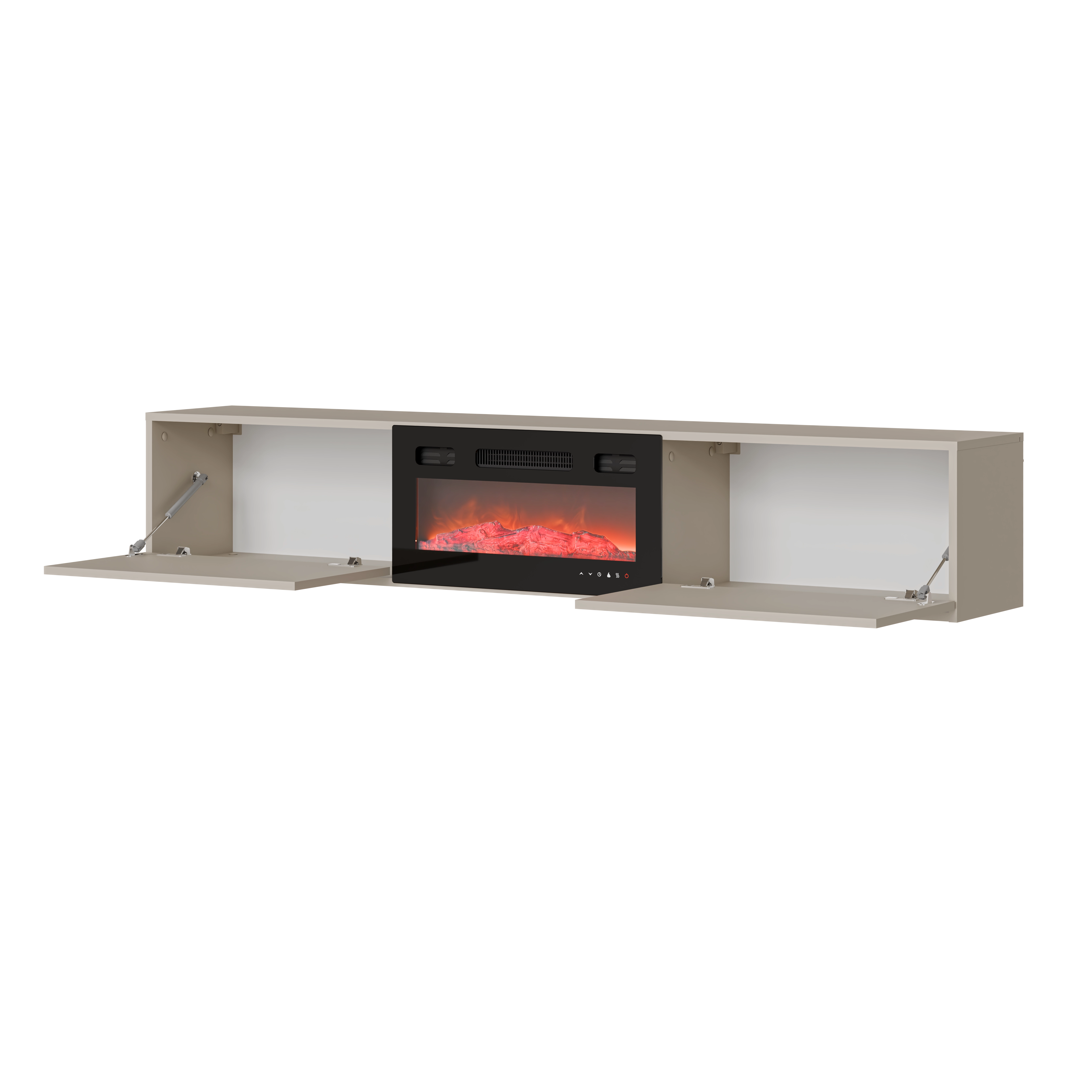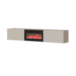 Szafka RTV kaszmir GOVI 180 cm to nowoczesna szafka RTV z kominkiem, która łączy minimalistyczną formę z efektownym detalem ognia. Idealnie wpisuje się w eleganckie, współczesne wnętrza, nadając im przytulny i stylowy charakter.