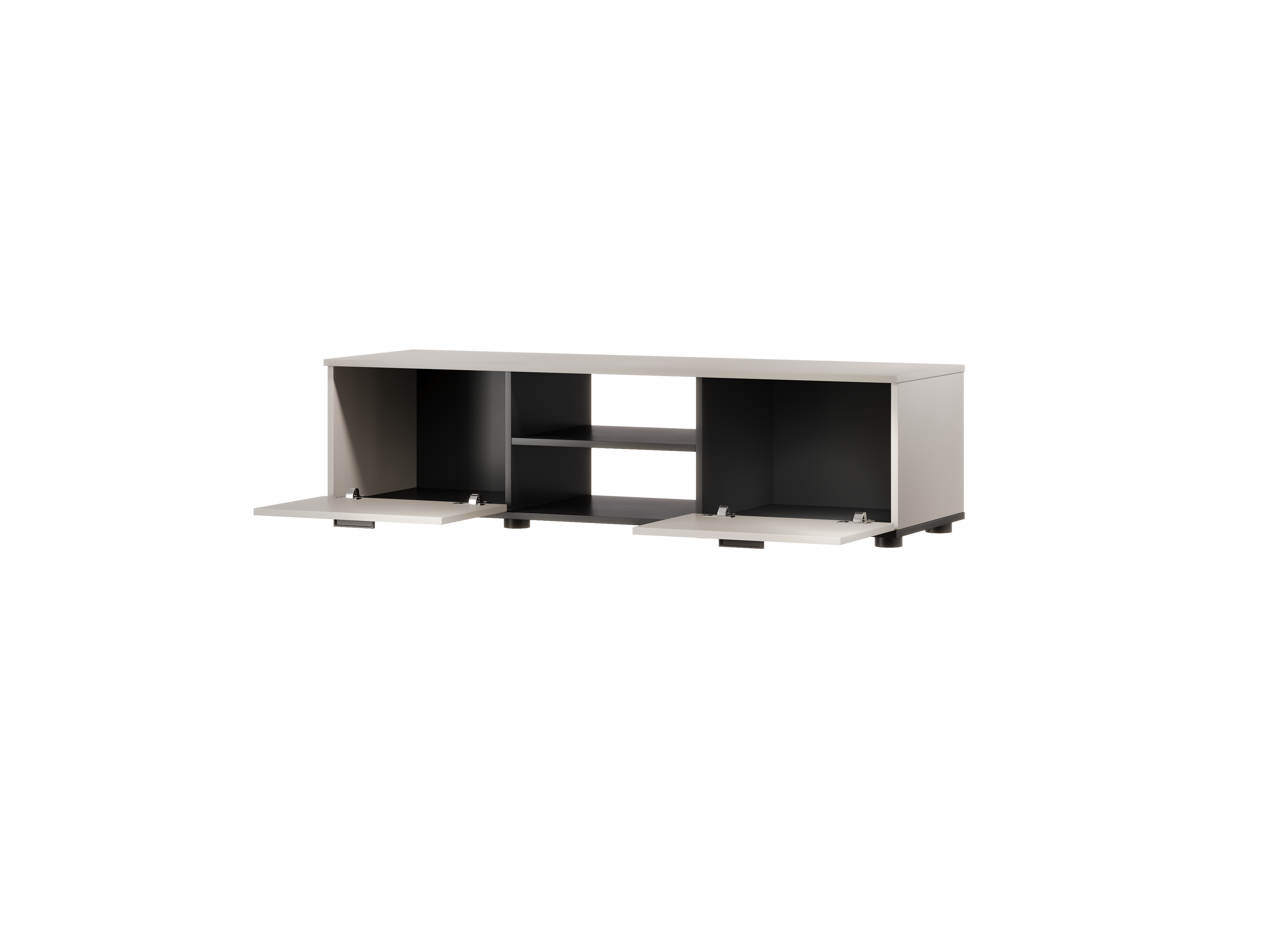 Połączenie zamkniętych przestrzeni z otwartą półką porządkuje strefę multimedialną, zachowując wizualny ład. Bryła sprzyja codziennemu użytkowaniu, nie przytłaczając wnętrza swoją obecnością. W nowoczesnych aranżacjach świetnie odnajduje się jako nowoczesna szafka RTV, która łączy estetykę z komfortem użytkowania.