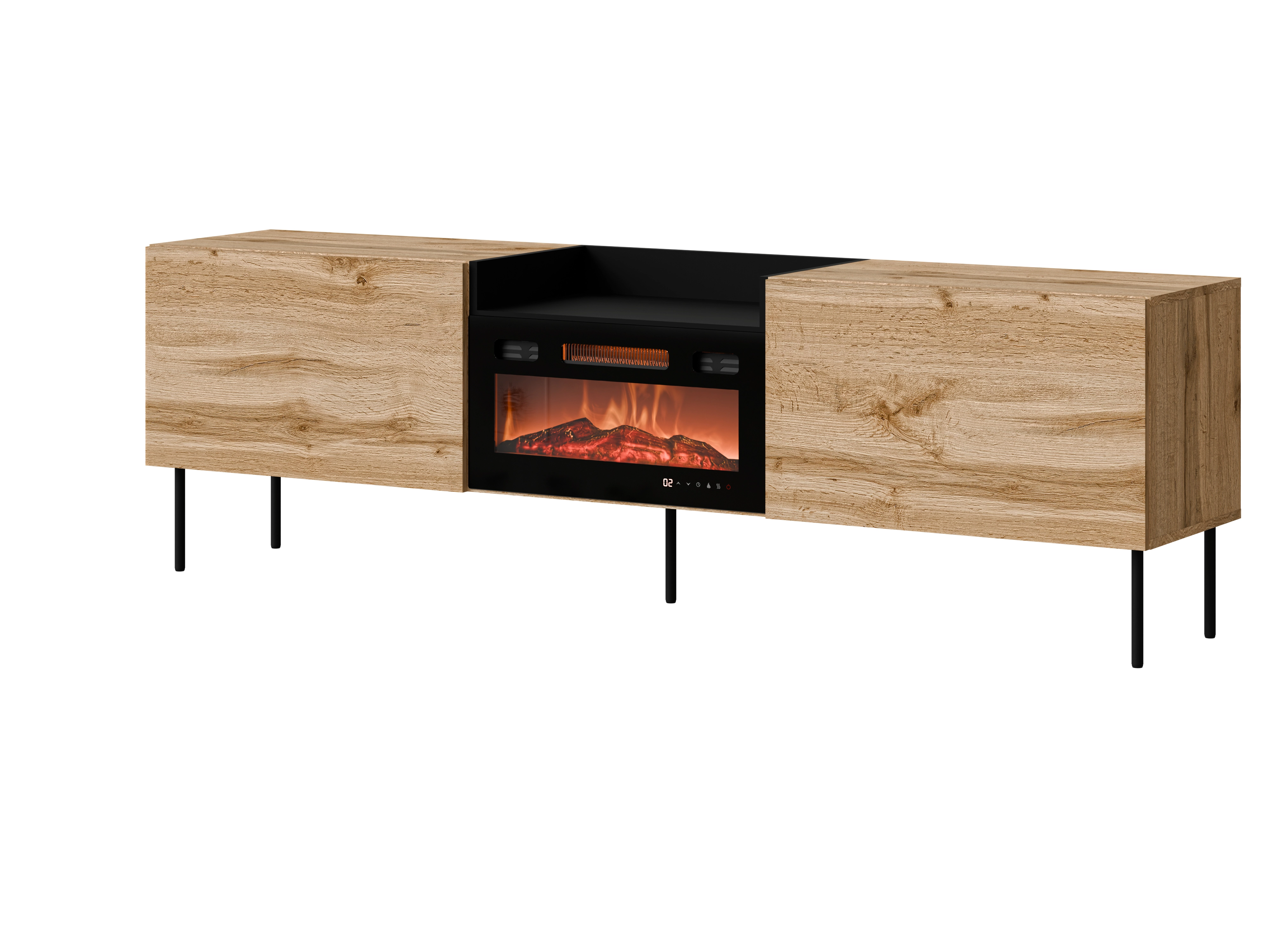 Szafka RTV z kominkiem KANTON 200 cm dąb wotan