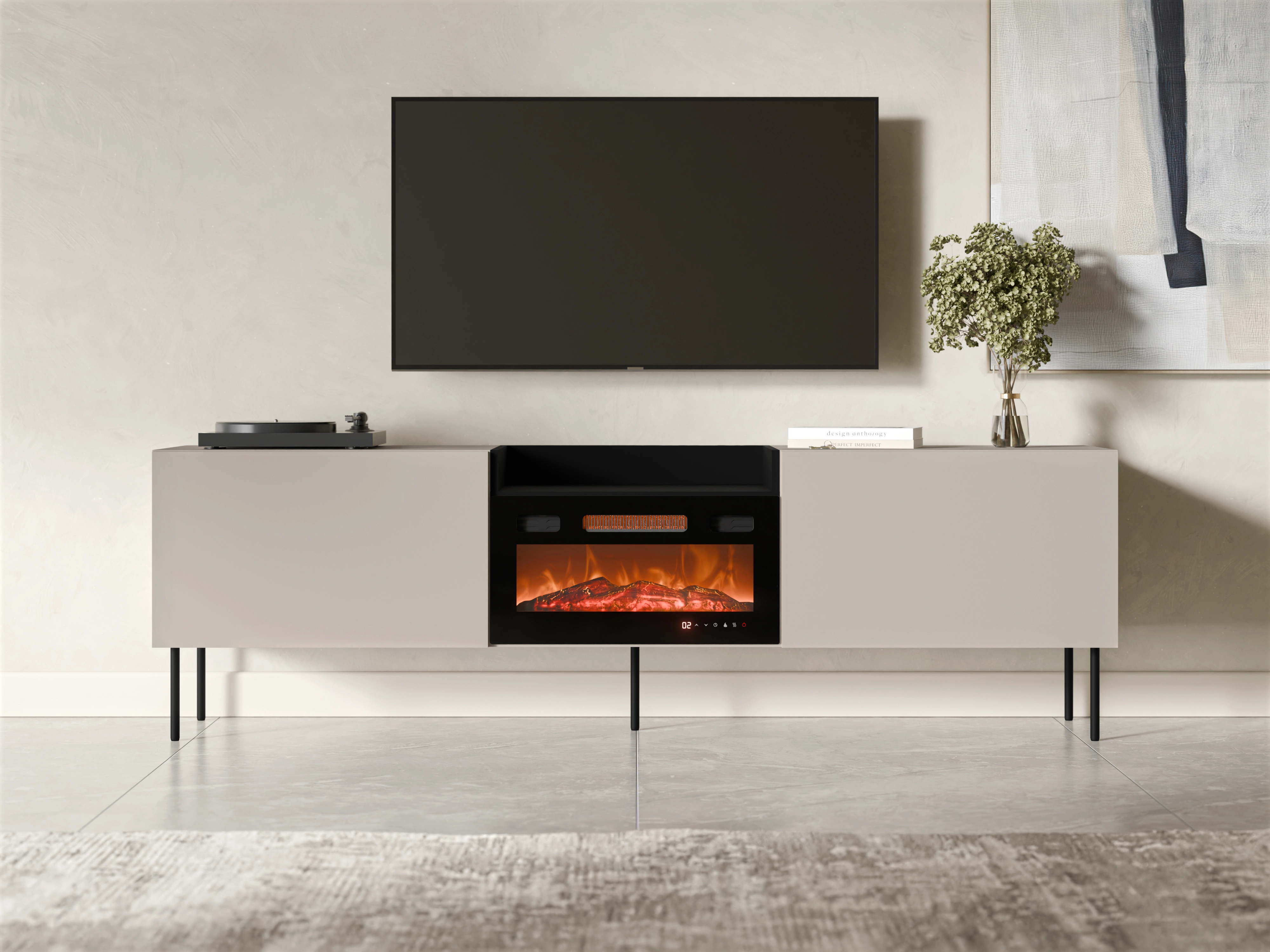 Szafka RTV z kominkiem KANTON 200 cm kaszmir
