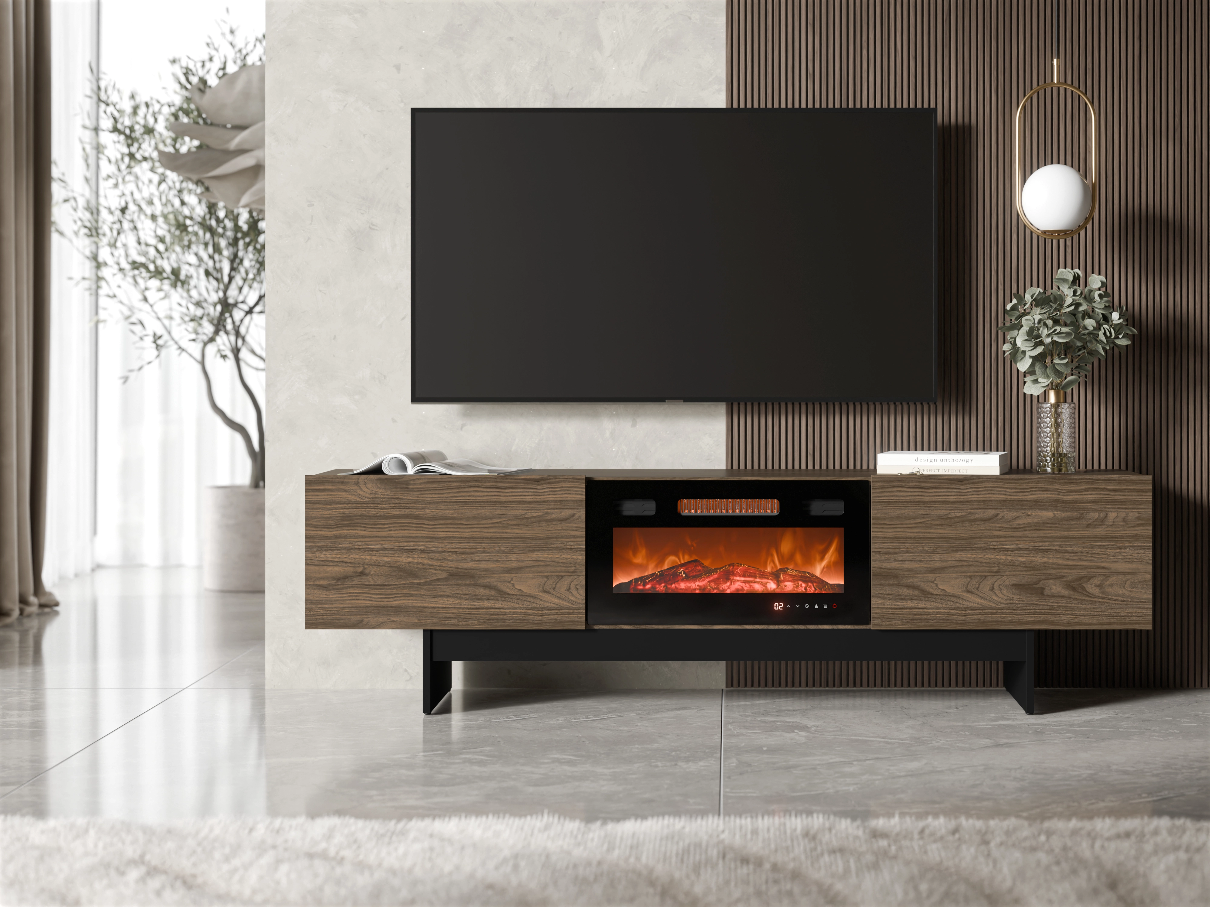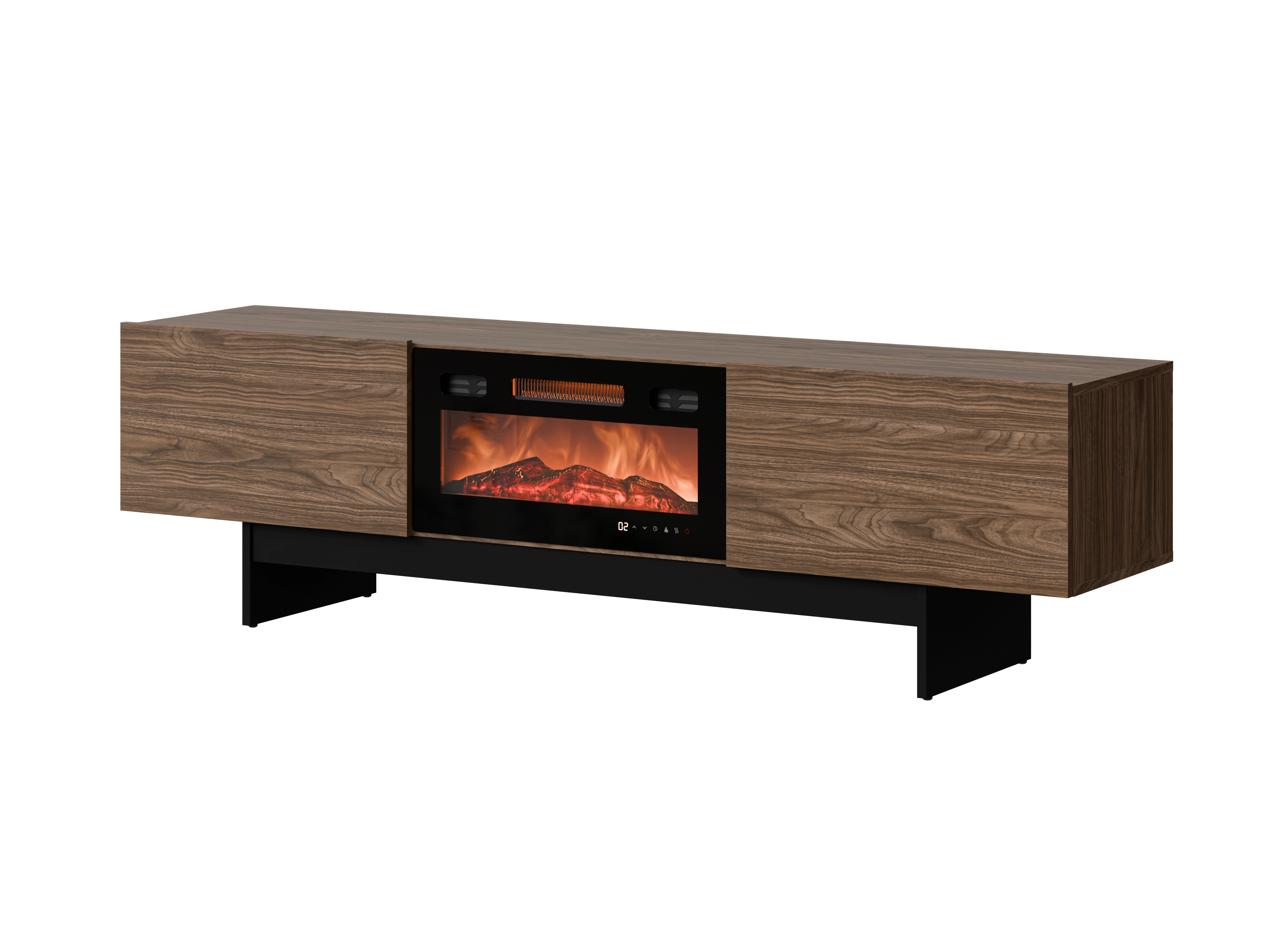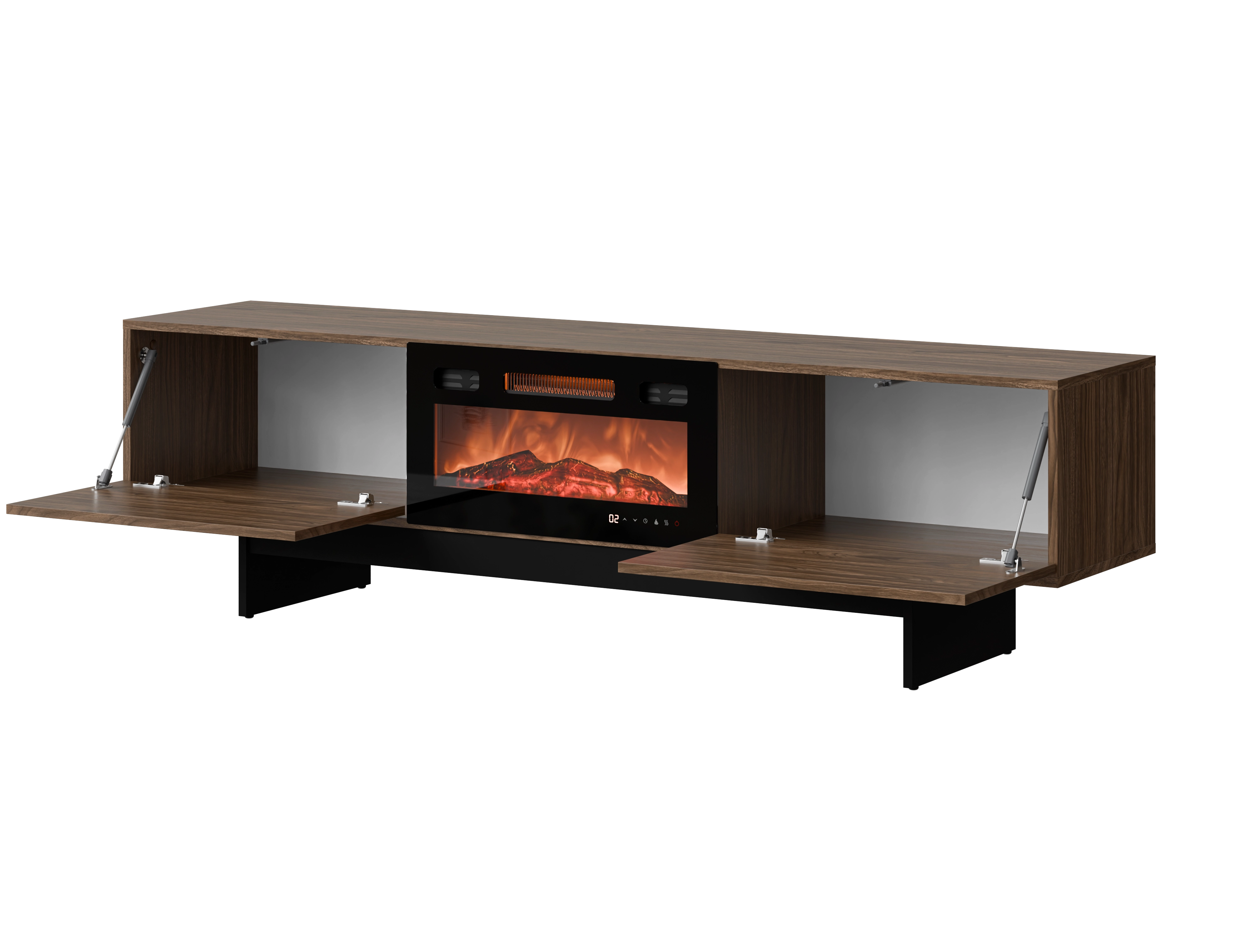Szafka RTV z kominkiem ROSARIO 180 cm w kolorze orzech to nowoczesna szafka RTV, która pozwala wygodnie ustawić telewizor i sprzęt w jednym miejscu. Daje uporządkowaną przestrzeń i łatwy dostęp do urządzeń. Dodatkowo posiada kominek, który tworzy efekt płomienia i poprawia komfort użytkowania.