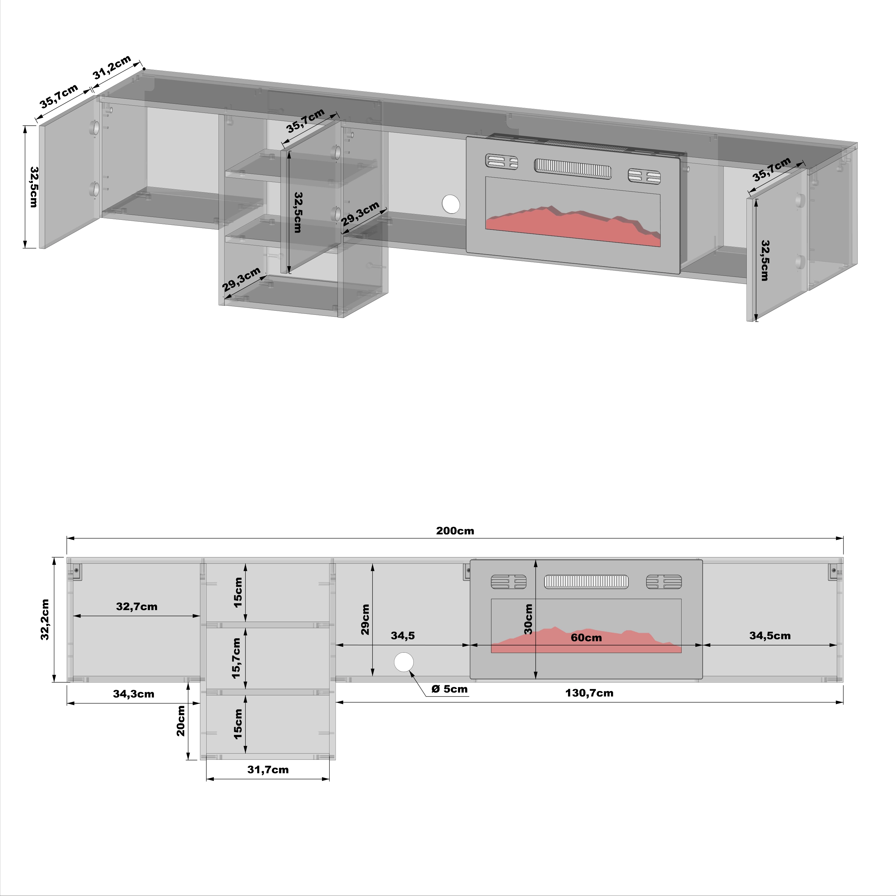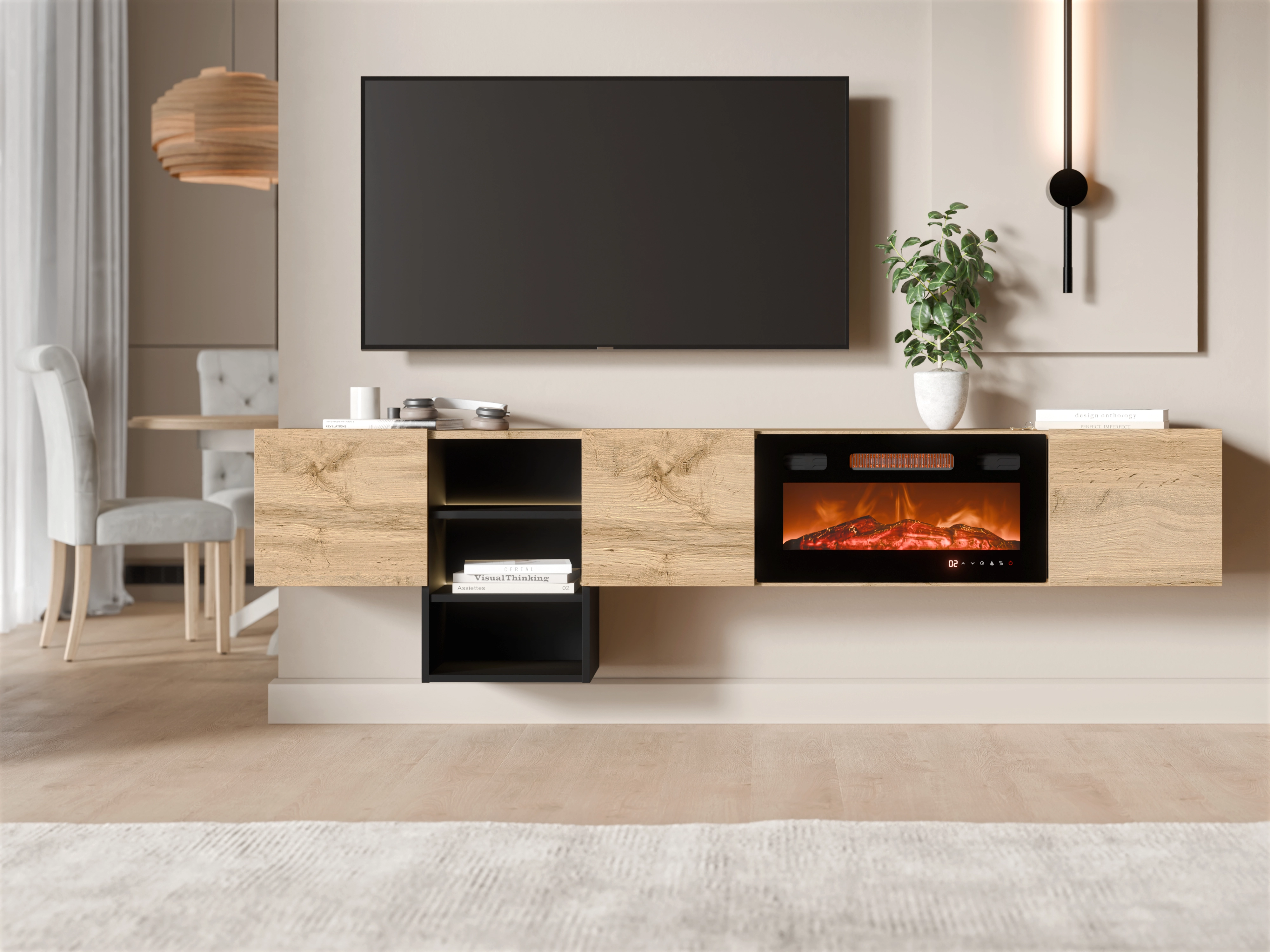 Szafka RTV z kominkiem TEO 200 cm dąb wotan