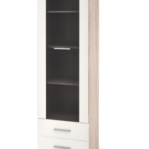 Witryna Dąb Sonoma Biała Połysk LIZA 60 cm to nowoczesna witryna dąb sonoma, która łączy naturalny dekor drewna z eleganckim połyskiem. Przeszklona część pozwala wyeksponować dekoracje, a szuflady pomagają uporządkować przestrzeń. To połączenie funkcjonalności i stylu, które dobrze sprawdza się w salonie.