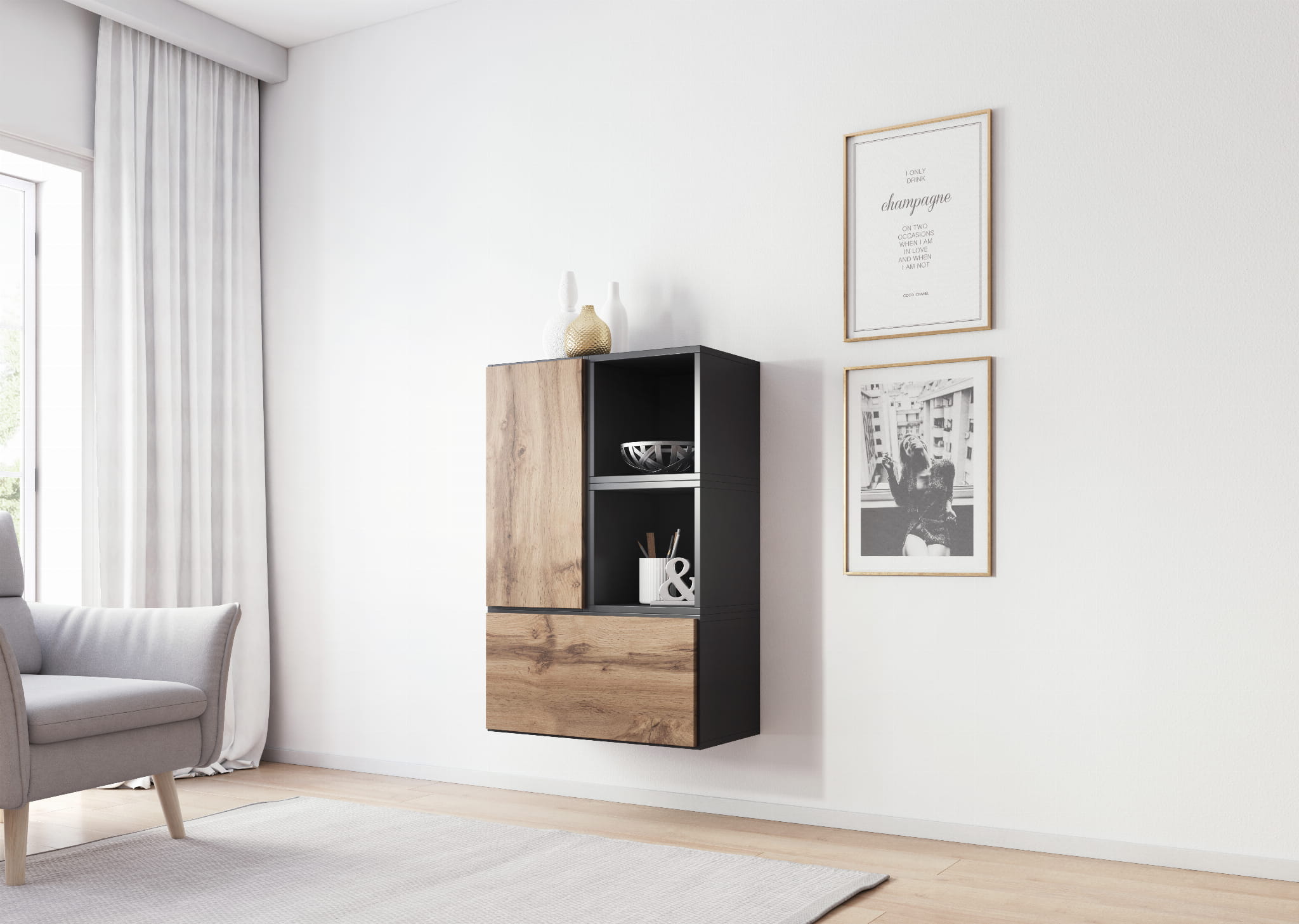 Szafka ROCO 3: 37 / 75 / 39 cm, możliwość powieszenia/ postawienia szafki w poziomie lub w pionie, jedna klapa otwierana do dołu lub do boku (lewo/prawo), wewnątrz jedna przestrzeń- brak półki, szafka wisząca lub stojąca, akcesoria tzw. ślizgacze w zestawie, Jeśli front ma się otwierać ku górze, należy we własny zakresie zakupić podnośniki gazowe (2 sztuki do jednej szafki), system otwierania PUSH-CLICK. 2 sztuki w zestawie.